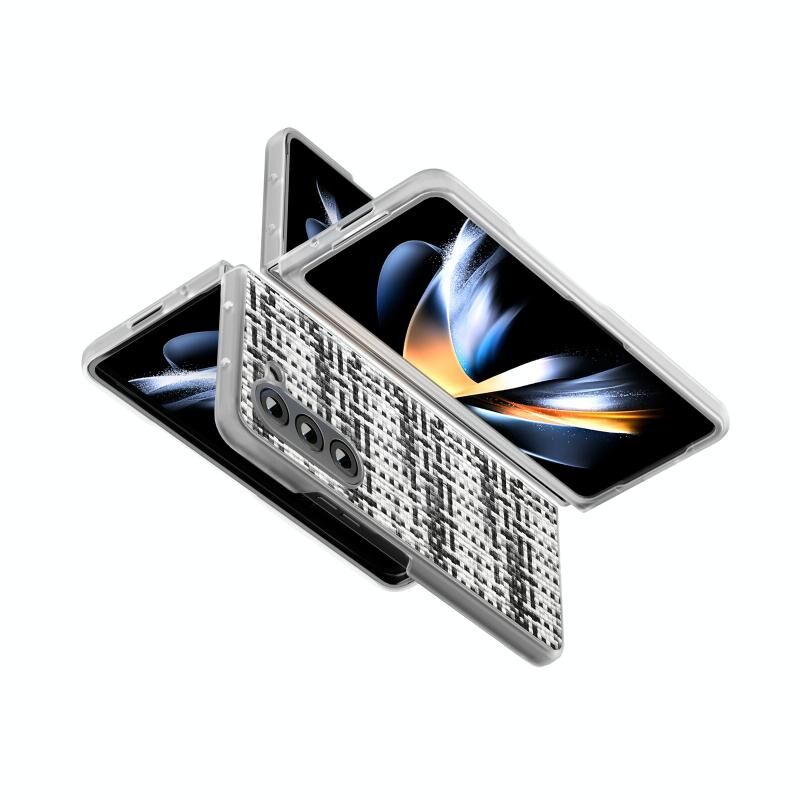 Για Samsung Galaxy Z Fold5 5G πολύχρωμο Rhombic υφή παγωμένο ημιδιαφανές πλαίσιο PU υπόθεση τηλεφώνου (μαύρο λευκό)