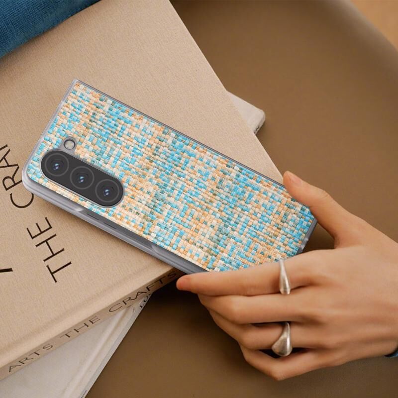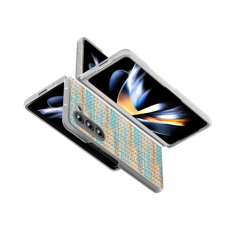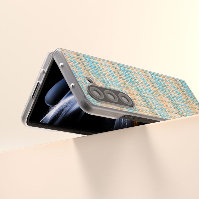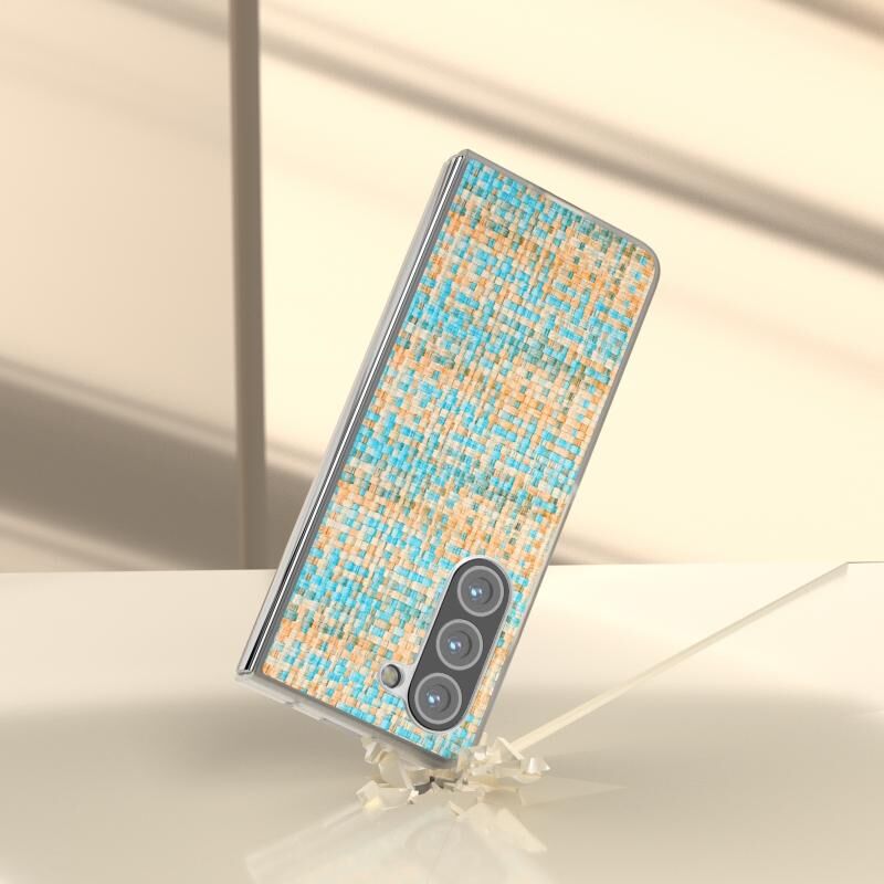 Για Samsung Galaxy Z Fold5 5G πολύχρωμο Rhombic υφή παγωμένο ημιδιαφανές πλαίσιο PU υπόθεση τηλεφώνου (μπλε)
