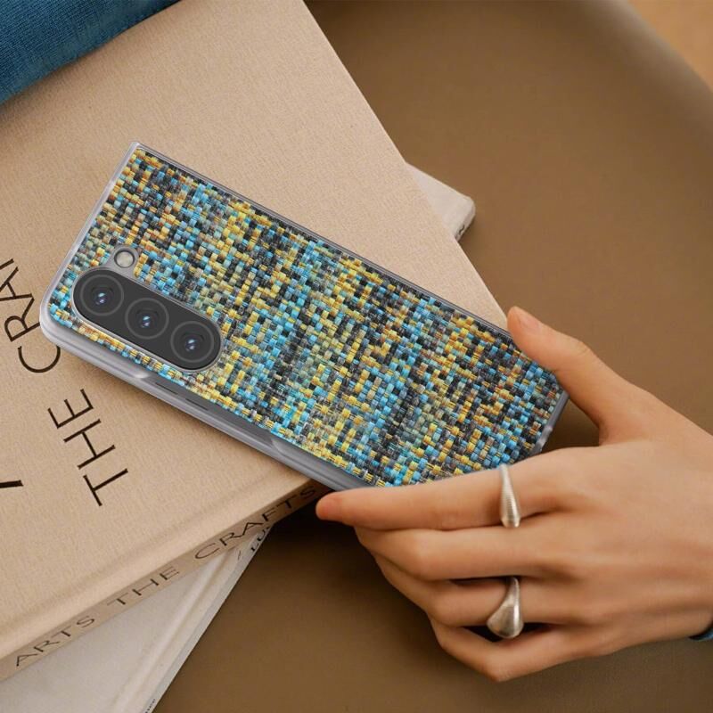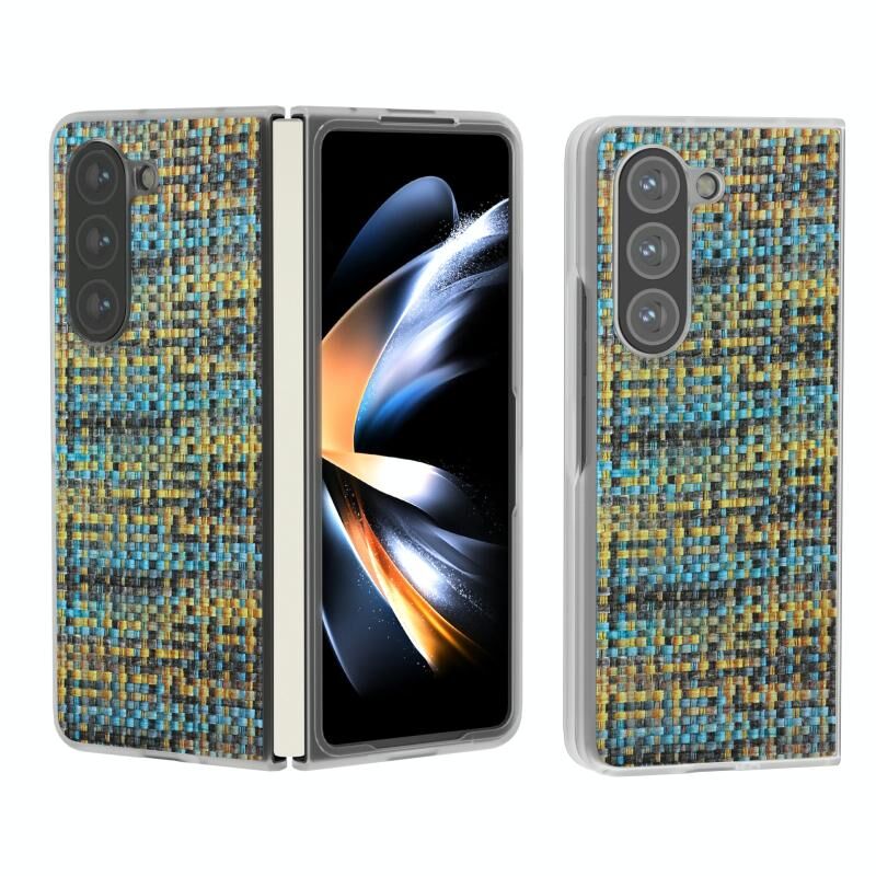 Για Samsung Galaxy Z Fold5 5G πολύχρωμο Rhombic υφή παγωμένο ημιδιαφανές πλαίσιο PU υπόθεση τηλεφώνου (χρυσό)