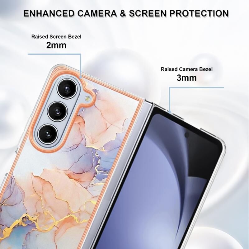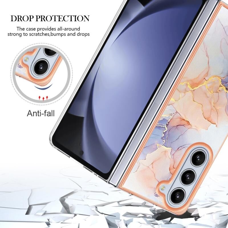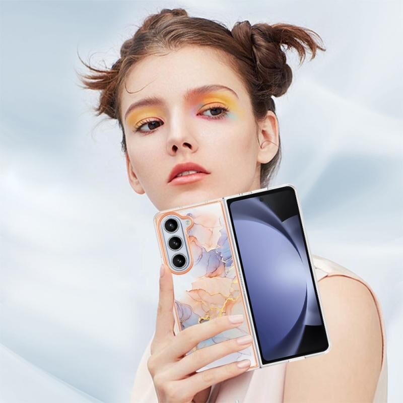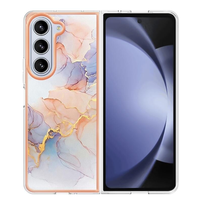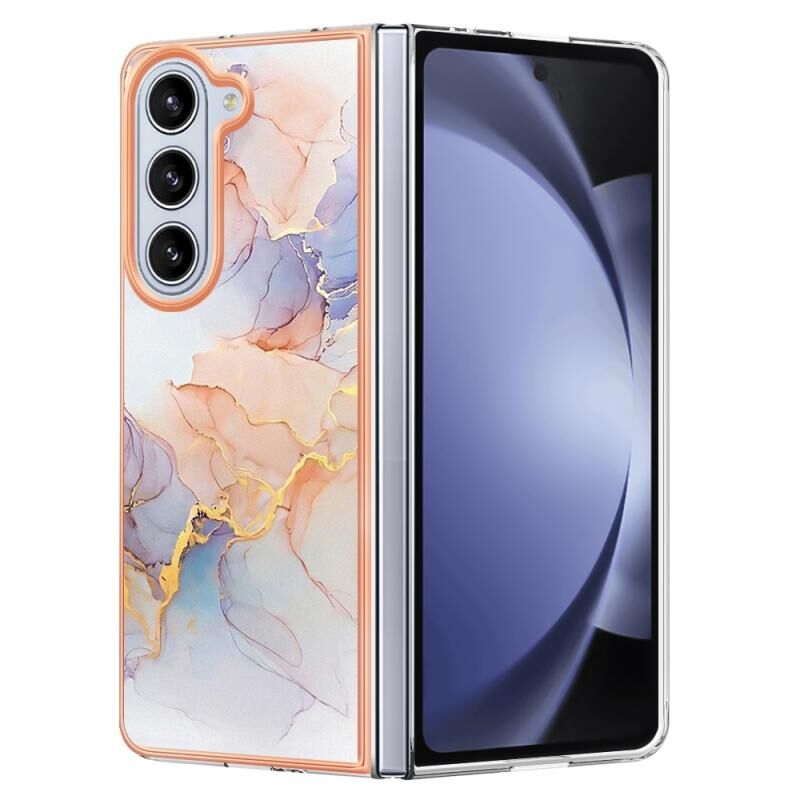 Θήκη τηλεφώνου Samsung Galaxy Z Fold5 5G με ηλεκτρολυτική επιμετάλλωση IMD TPU (Λευκό Μάρμαρο)