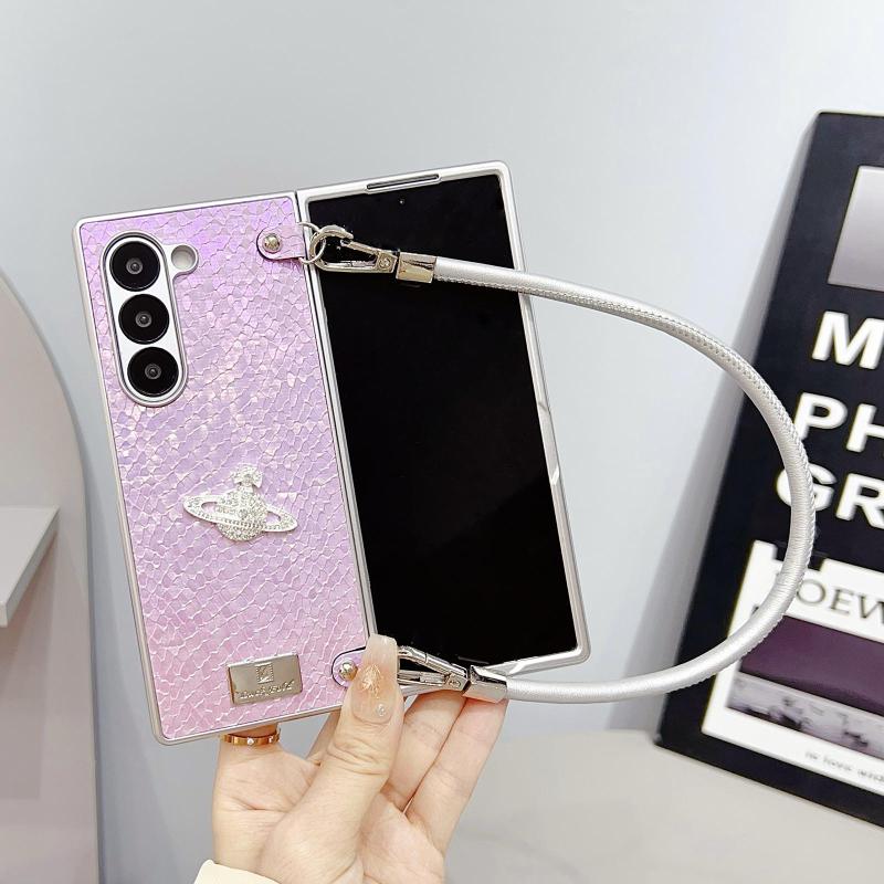 For Samsung Galaxy Z Fold5 5G Kirin Pattern Full Coverage Phone Case with Wrist Strap(Pink)