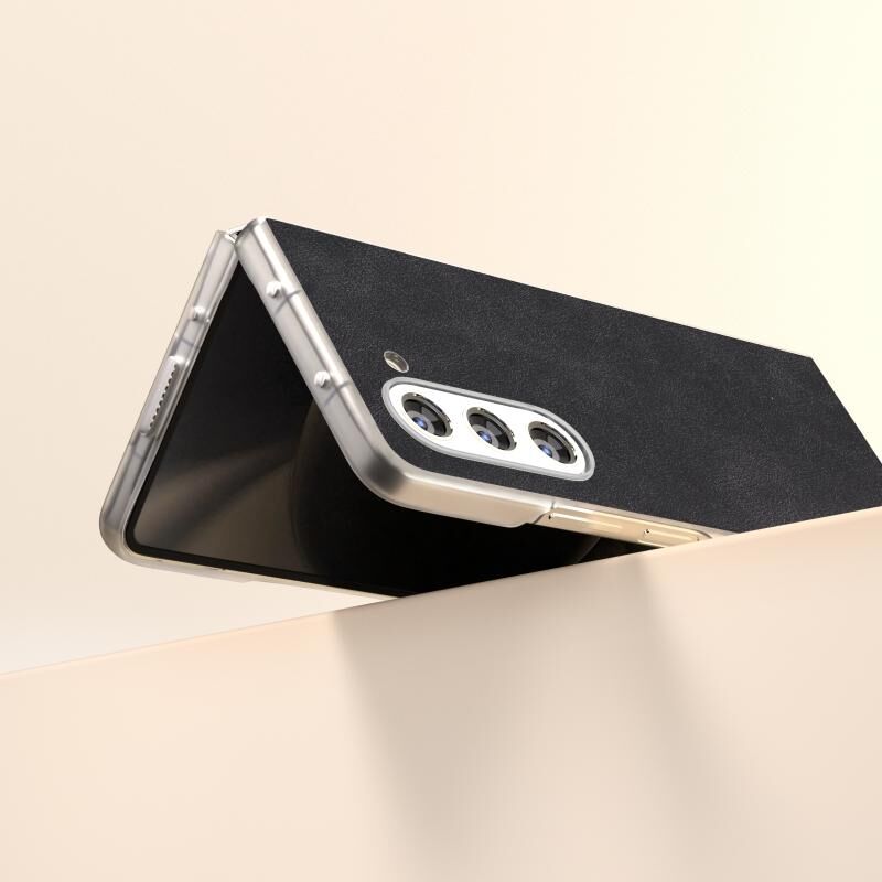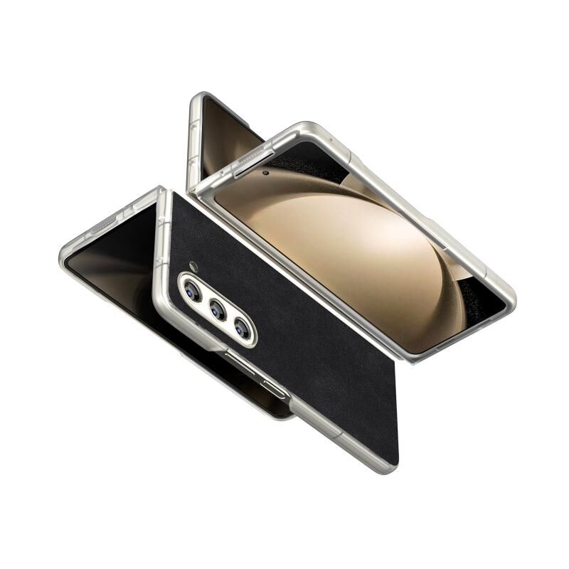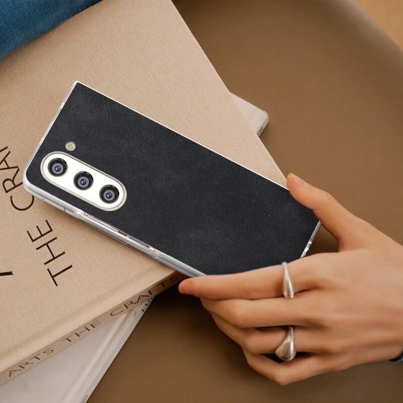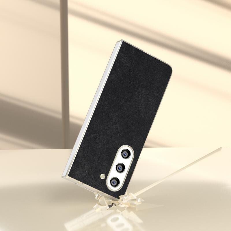Για Samsung Galaxy Z Fold5 5G PU δέρμα παγωμένο διαφανές Edge υπόθεση τηλεφώνου (μαύρο)