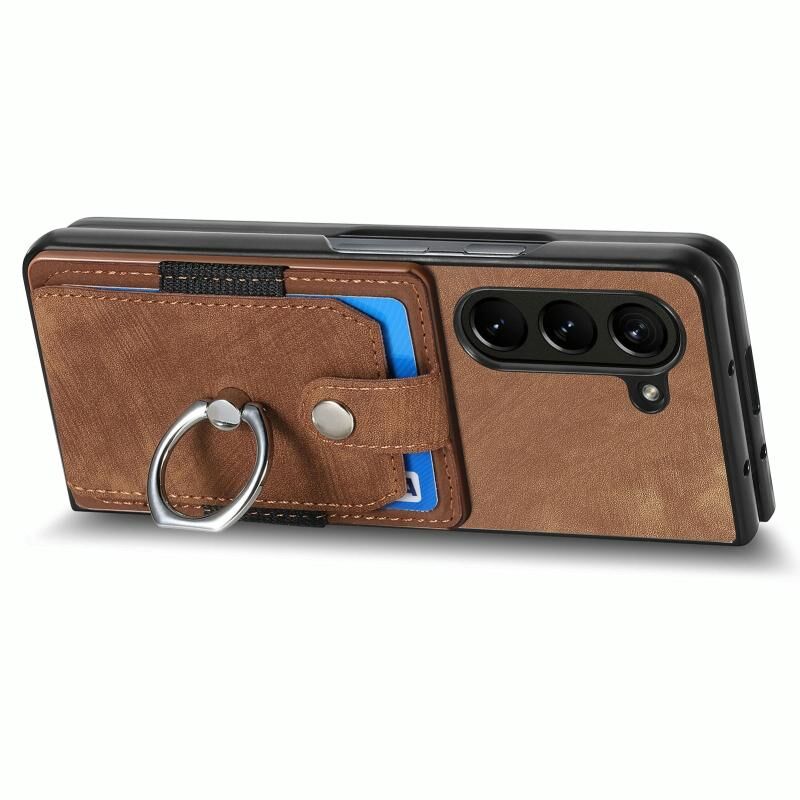 Θήκη τηλεφώνου πορτοφόλι με δακτύλιο και πολλαπλές θήκες καρτών για Samsung Galaxy Z Fold5 5G, με ρετρό αίσθηση (Μαύρο)