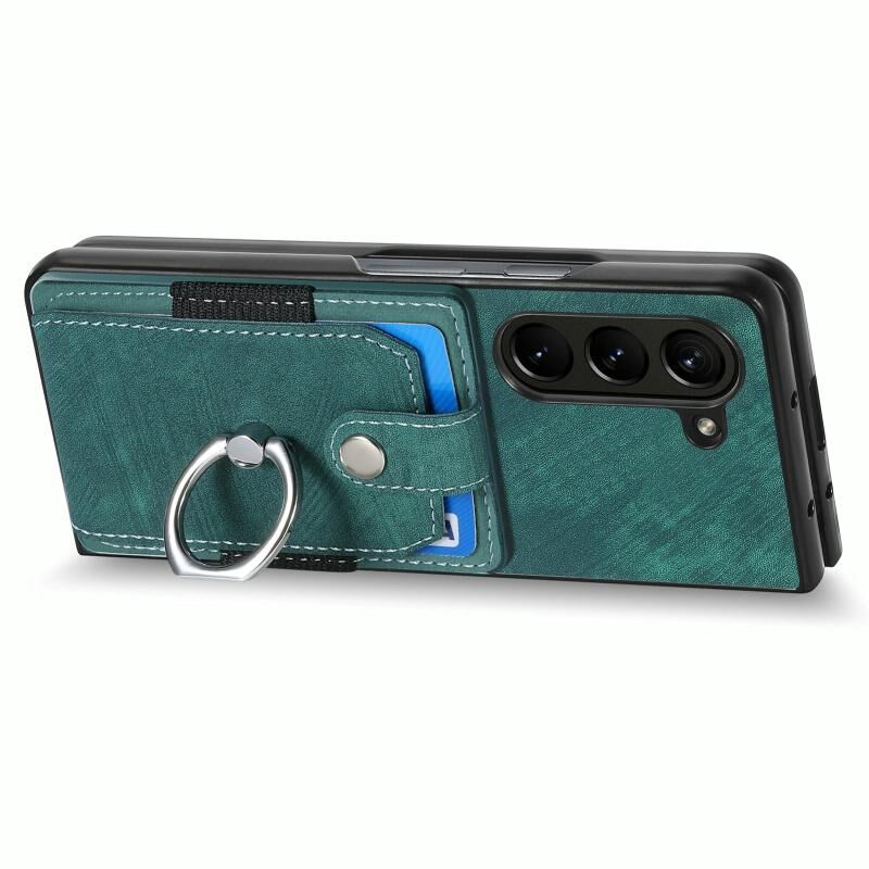 Θήκη τηλεφώνου πορτοφόλι με δακτύλιο και πολλαπλές θήκες καρτών για Samsung Galaxy Z Fold5 5G, με ρετρό αίσθηση (Μαύρο)