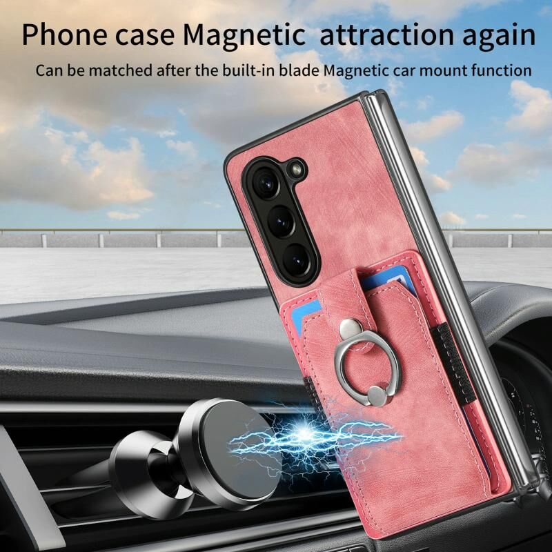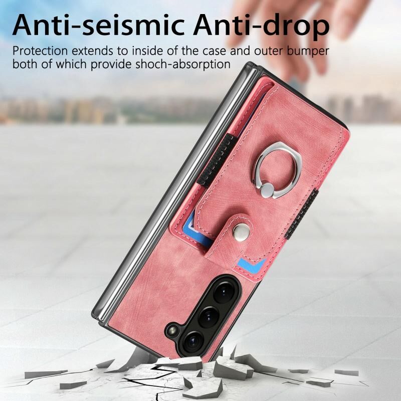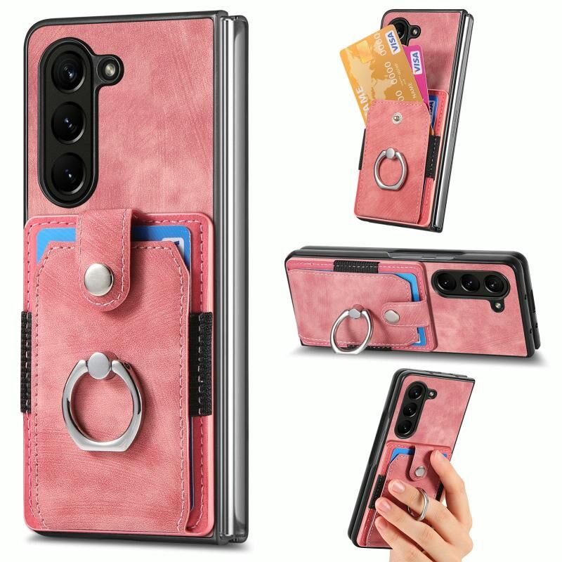 Θήκη τηλεφώνου πορτοφόλι με δακτύλιο και πολλαπλές θήκες καρτών για Samsung Galaxy Z Fold5 5G, με ρετρό αίσθηση (Μαύρο)