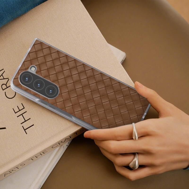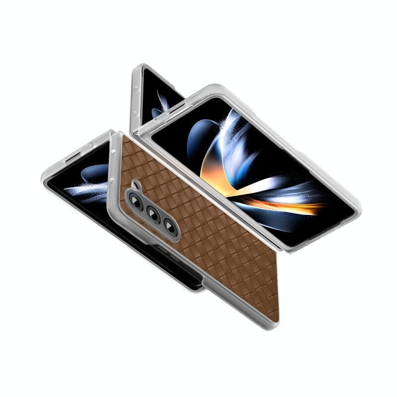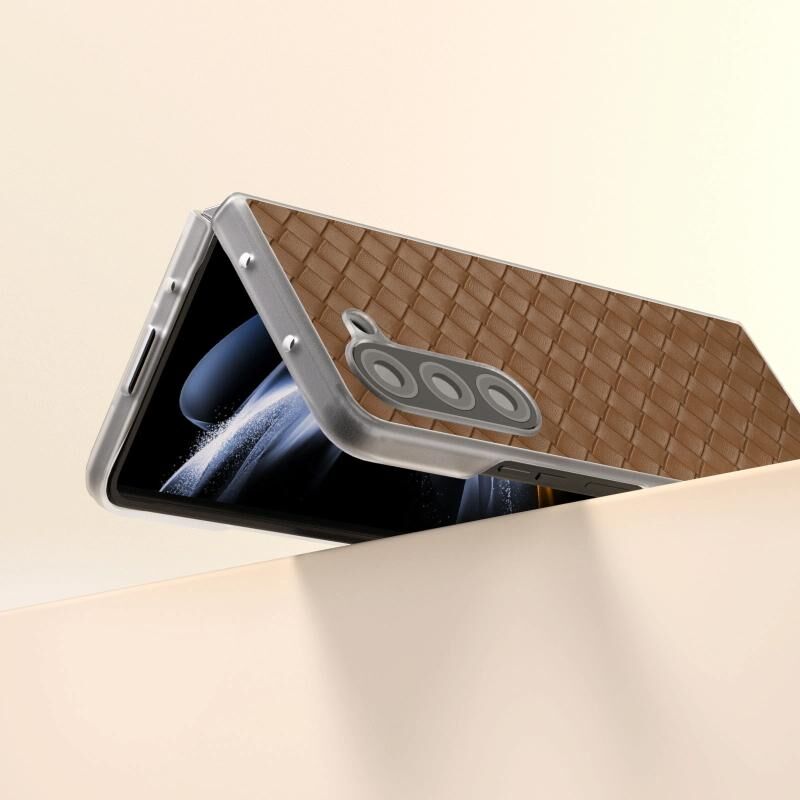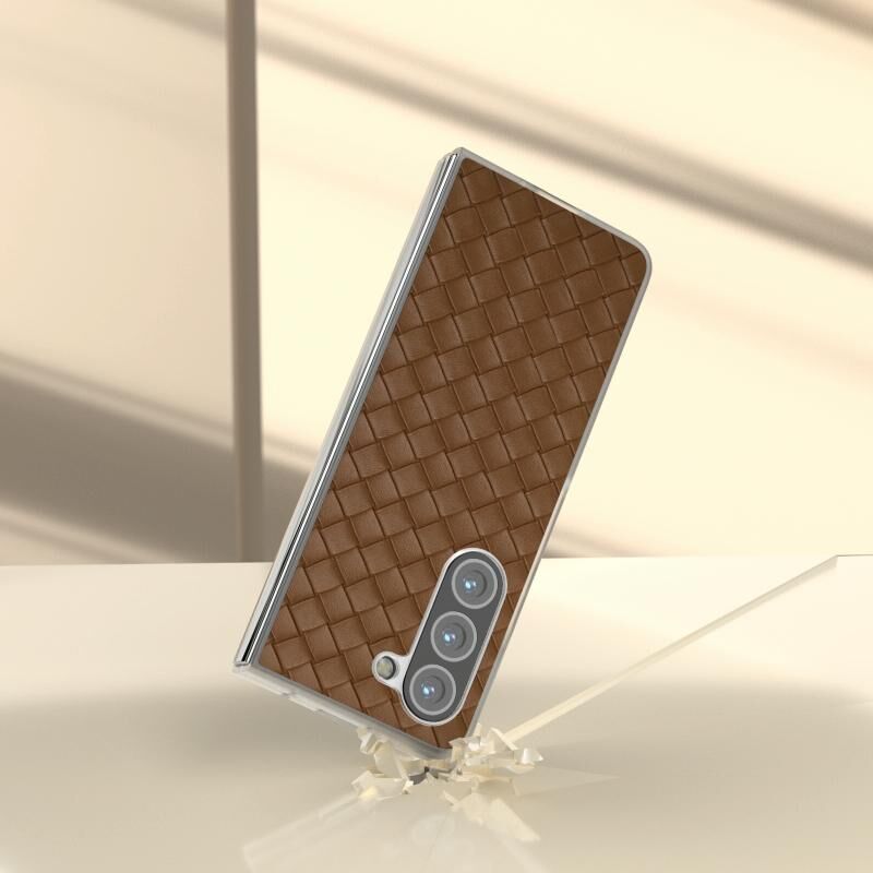 Για Samsung Galaxy Z Fold5 5G υφαντή υφή παγωμένο ημιδιαφανές πλαίσιο PU υπόθεση τηλεφώνου (καφέ)