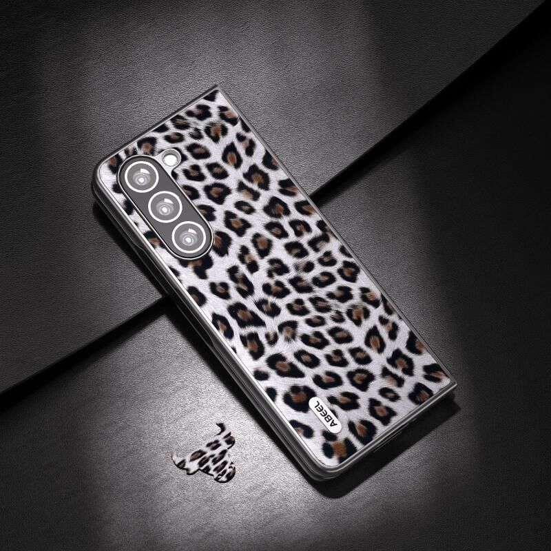 Θήκη τηλεφώνου για Samsung Galaxy Z Fold5 ABEEL Μαύρο Λεοπάρδαλη άκρη (Κόκκινο)