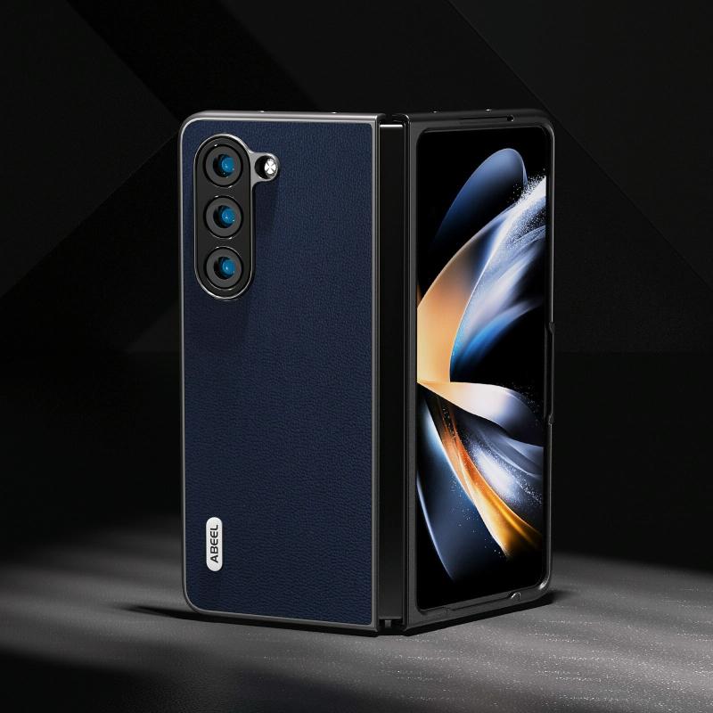 Θήκη τηλεφώνου Samsung Galaxy Z Fold5 ABEEL από γνήσιο δέρμα σειρά Luolai (Σκούρο μπλε)