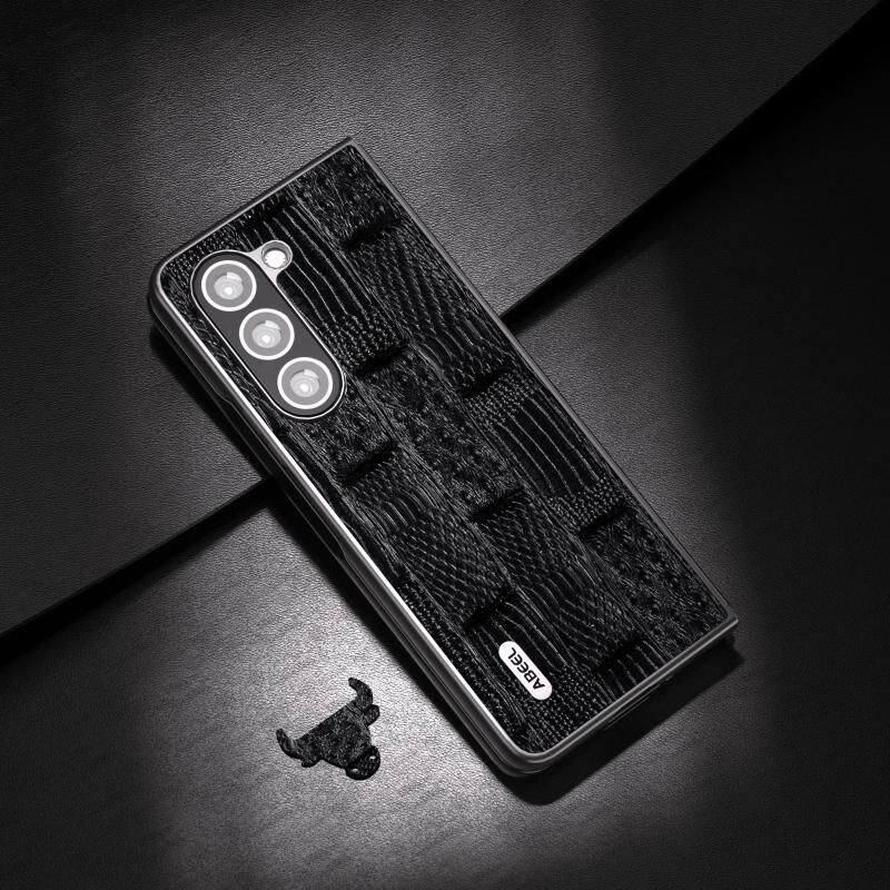 Θήκη τηλεφώνου Samsung Galaxy Z Fold5 ABEEL από γνήσιο δέρμα, σειρά Mahjong με υφή (Μπλε)
