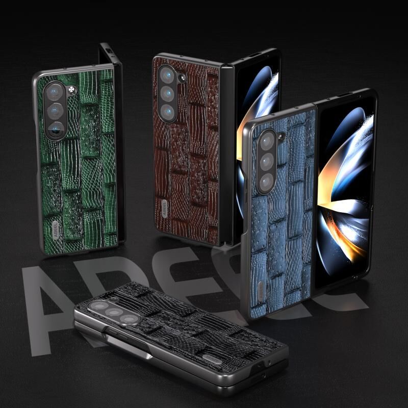 Θήκη τηλεφώνου Samsung Galaxy Z Fold5 ABEEL από γνήσιο δέρμα, σειρά Mahjong με υφή (Μπλε)