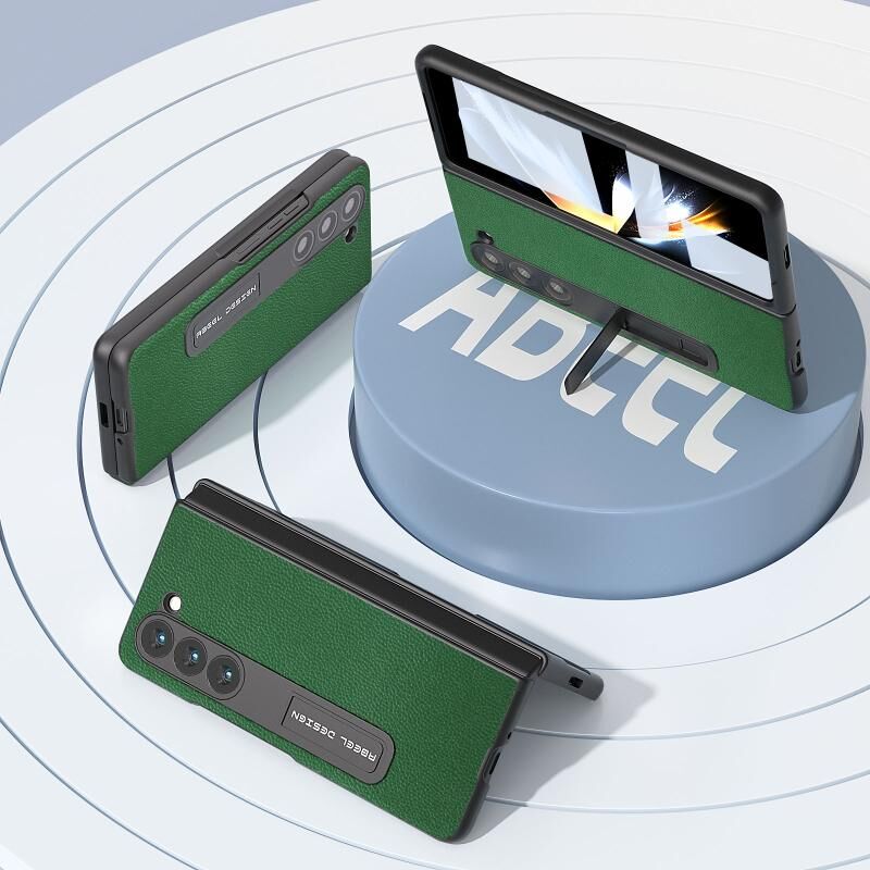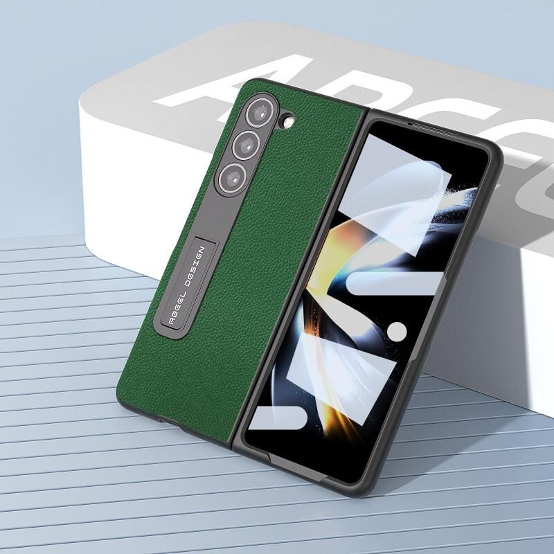 Θήκη τηλεφώνου Mino από γνήσιο δέρμα με ενσωματωμένη μαύρη άκρη ABEEL για Samsung Galaxy Z Fold5 με βάση (Πράσινο)