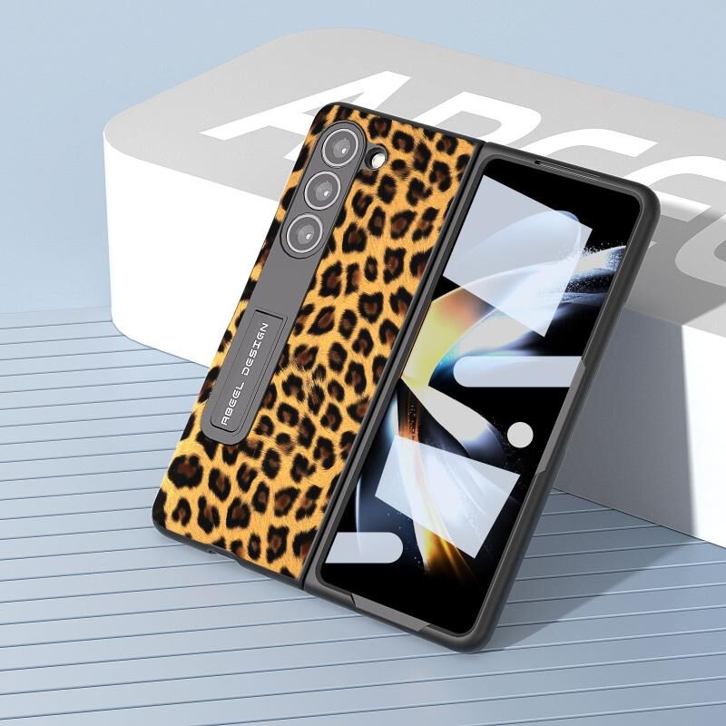 Θήκη τηλεφώνου ABEEL Integrated Black Edge Leopard με βάση στήριξης για Samsung Galaxy Z Fold5 (Χρυσό)
