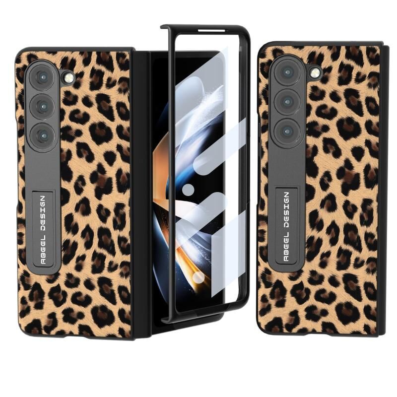 Θήκη τηλεφώνου ABEEL Integrated Black Edge Leopard με βάση για Samsung Galaxy Z Fold5 (Λεοπάρδαλη)