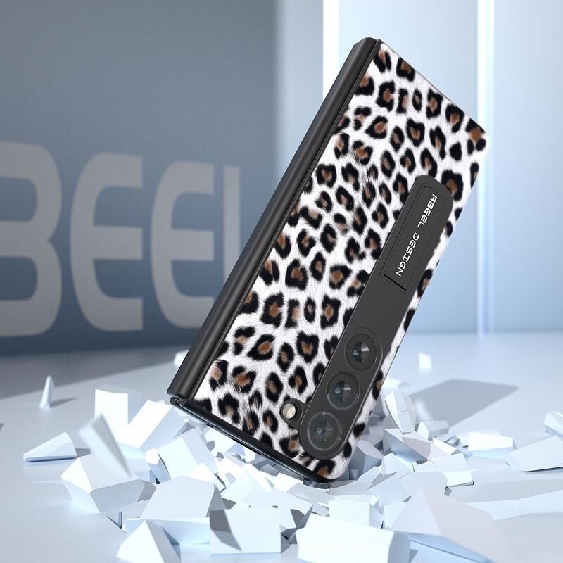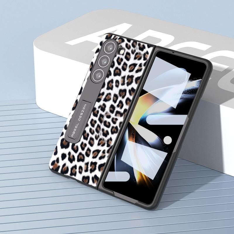 Θήκη τηλεφώνου ABEEL Integrated Black Edge Leopard με βάση στήριξης για Samsung Galaxy Z Fold5 (Χρυσό)