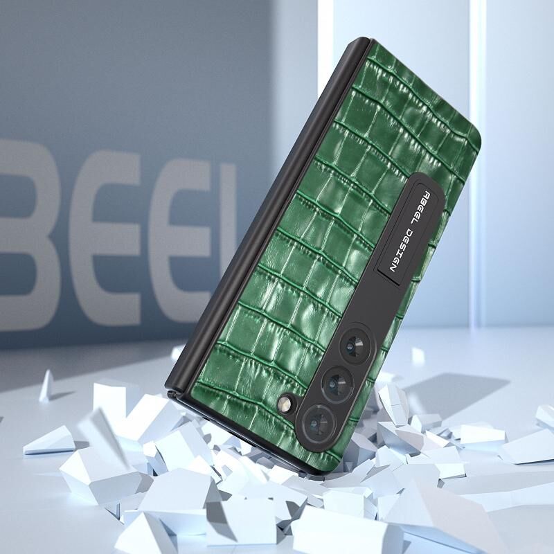 Θήκη τηλεφώνου από γνήσιο δέρμα με ενσωματωμένη υφή κροκόδειλου ABEEL για Samsung Galaxy Z Fold5 με βάση στήριξης (Καφέ)