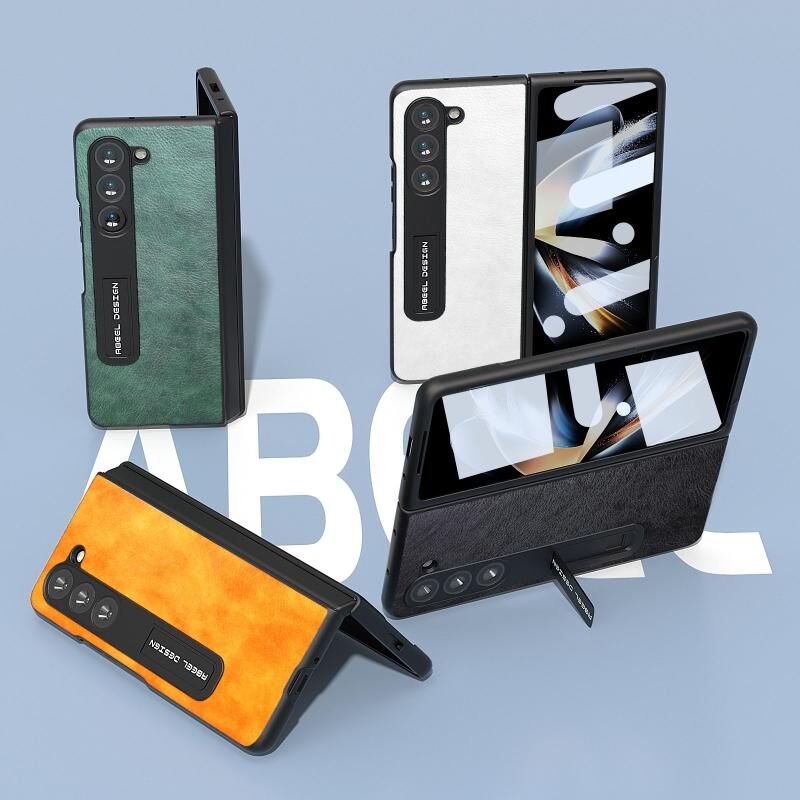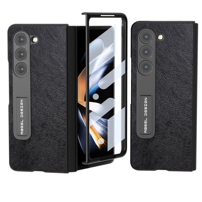 Θήκη τηλεφώνου PU με ενσωματωμένη βάση και υφή δέρματος λitchi διπλής απόχρωσης ABEEL για Samsung Galaxy Z Fold5 (Μαύρο)
