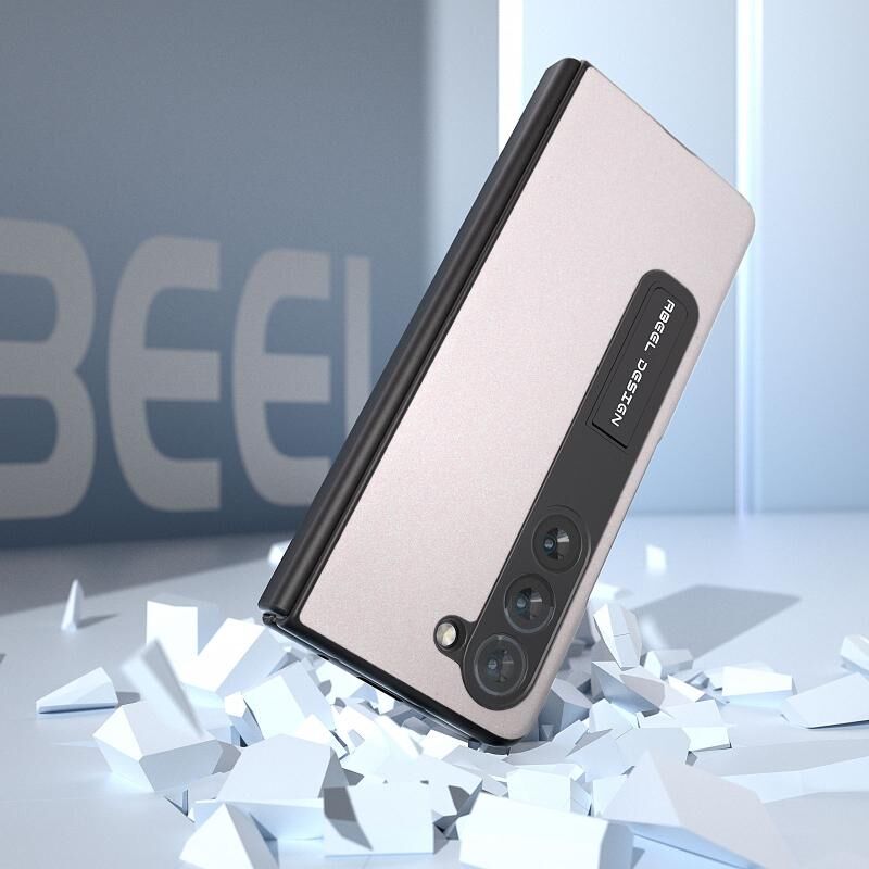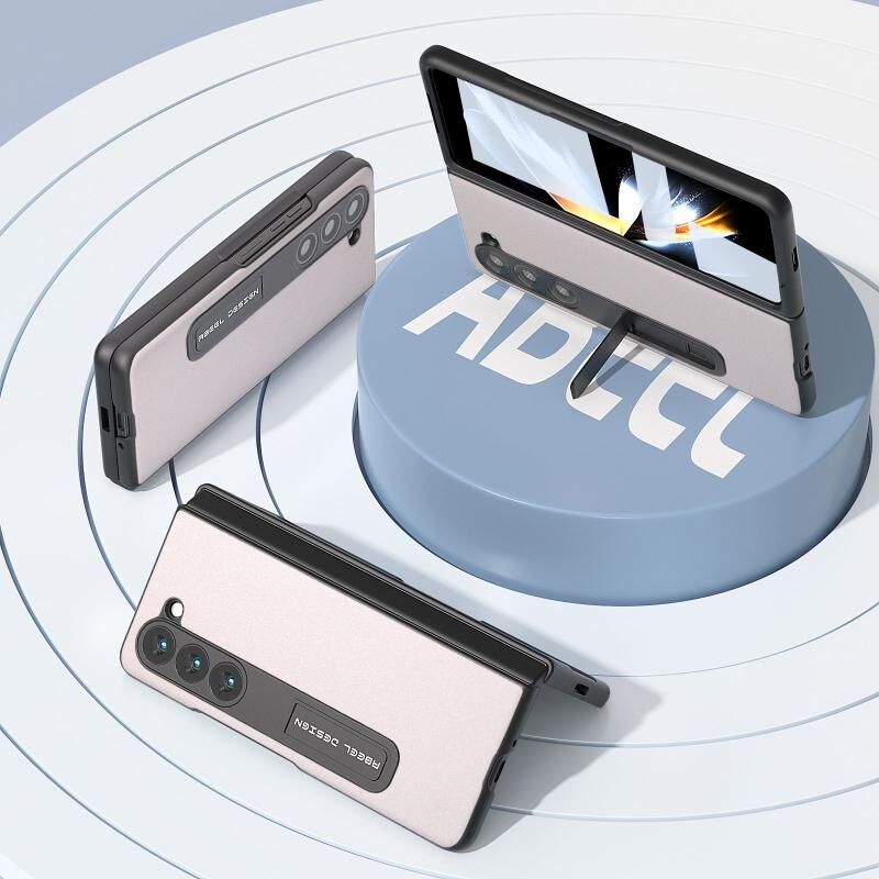 Θήκη κινητού τηλεφώνου με ενσωματωμένη λάμψη και αντικραδασμική προστασία για Samsung Galaxy Z Fold5 ABEEL με βάση στήριξης (Λευκό)