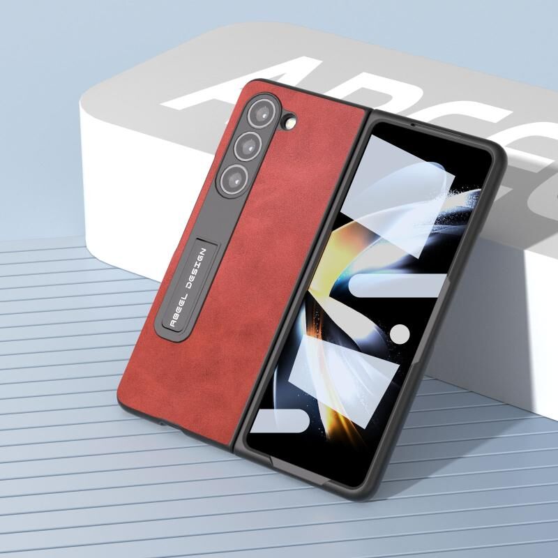 Θήκη τηλεφώνου για Samsung Galaxy Z Fold5 ABEEL Ενσωματωμένη Διχρωμία Υφή Μοσχαριού PU με Στήριξη (Κόκκινο)