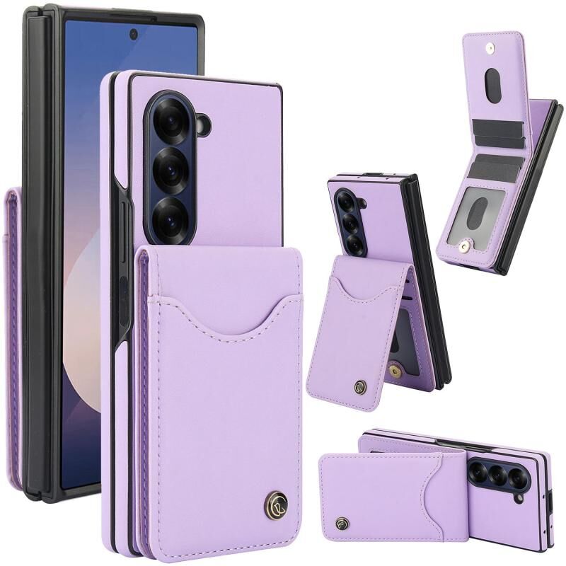 Για Samsung Galaxy Z Fold5 AwQuer RFID Κάθετη Flip κάρτα τσάντα κάτοχος δερμάτινη θήκη τηλεφώνου (Light Purple) (Awquer)