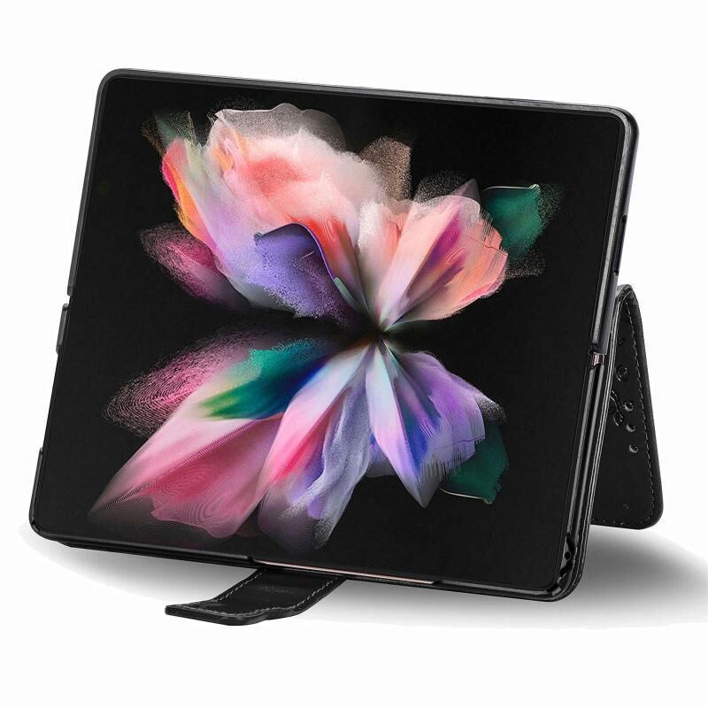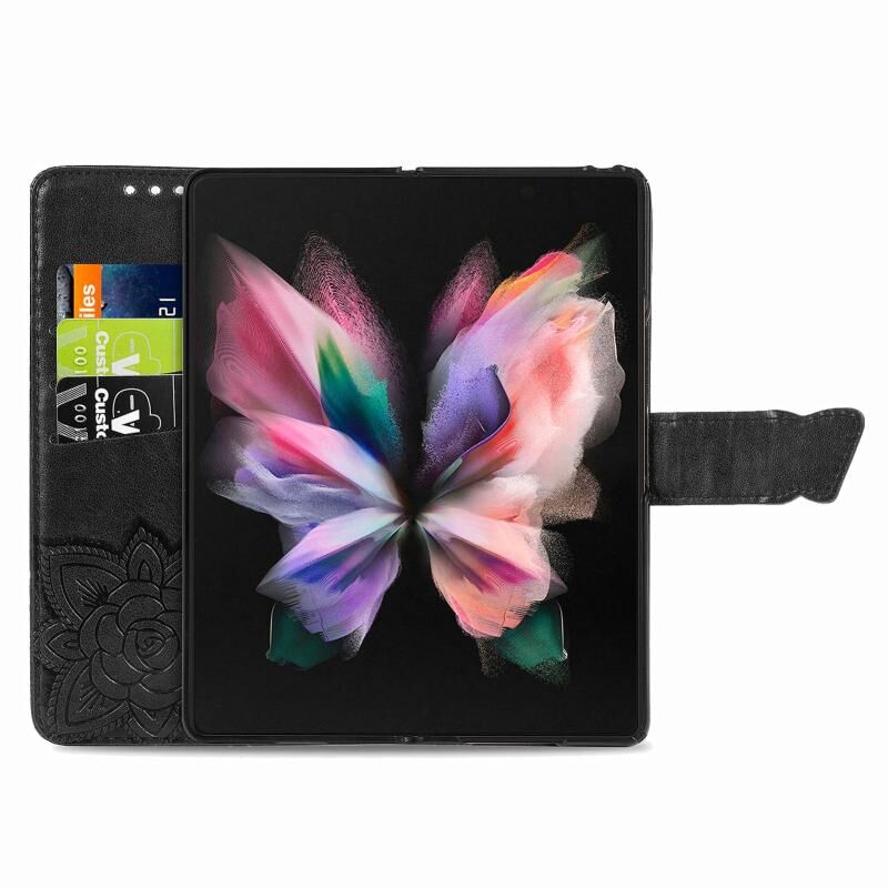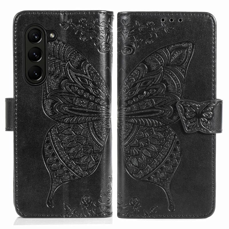Για Samsung Galaxy Z Fold5 πεταλούδα αγάπη λουλούδι ανάγλυφο δερμάτινη θήκη τηλεφώνου (μαύρο)