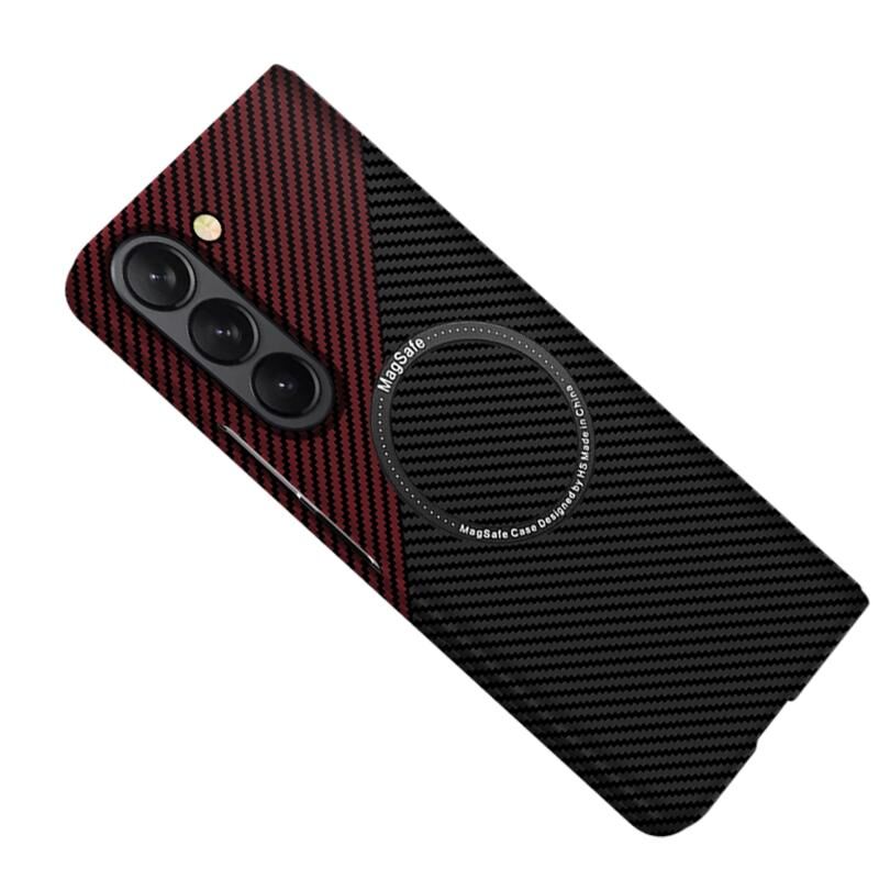 Θήκη τηλεφώνου MagSafe με μαγνητική υφή ανθρακονήματος για Samsung Galaxy Z Fold5 (Μαύρο Κόκκινο)