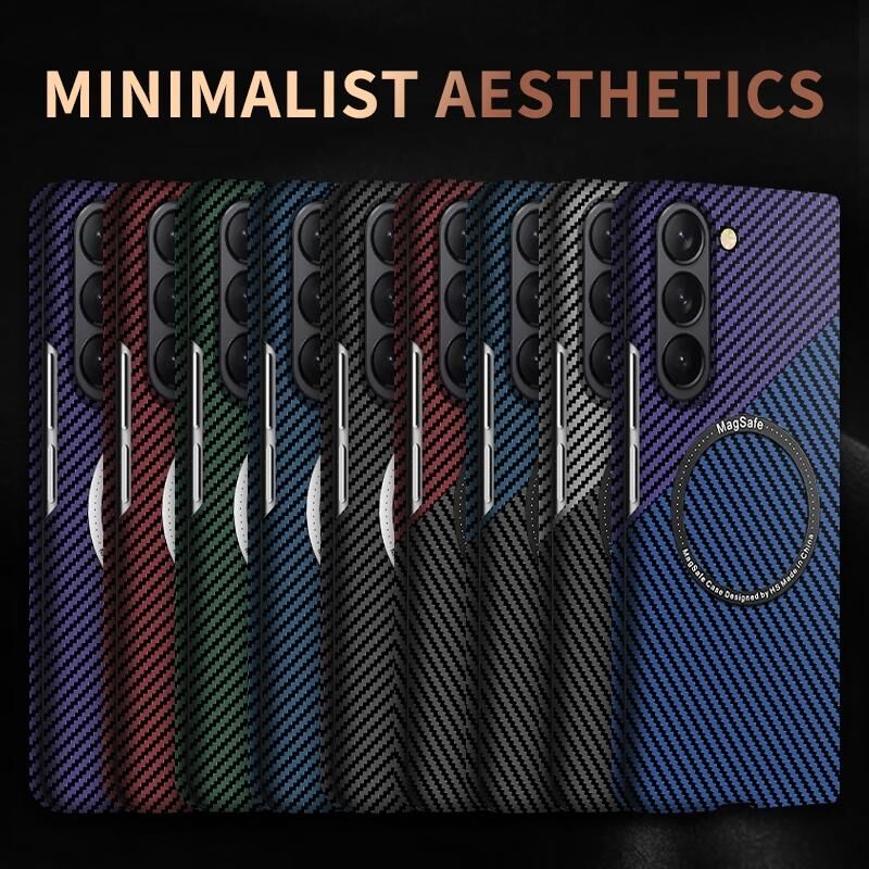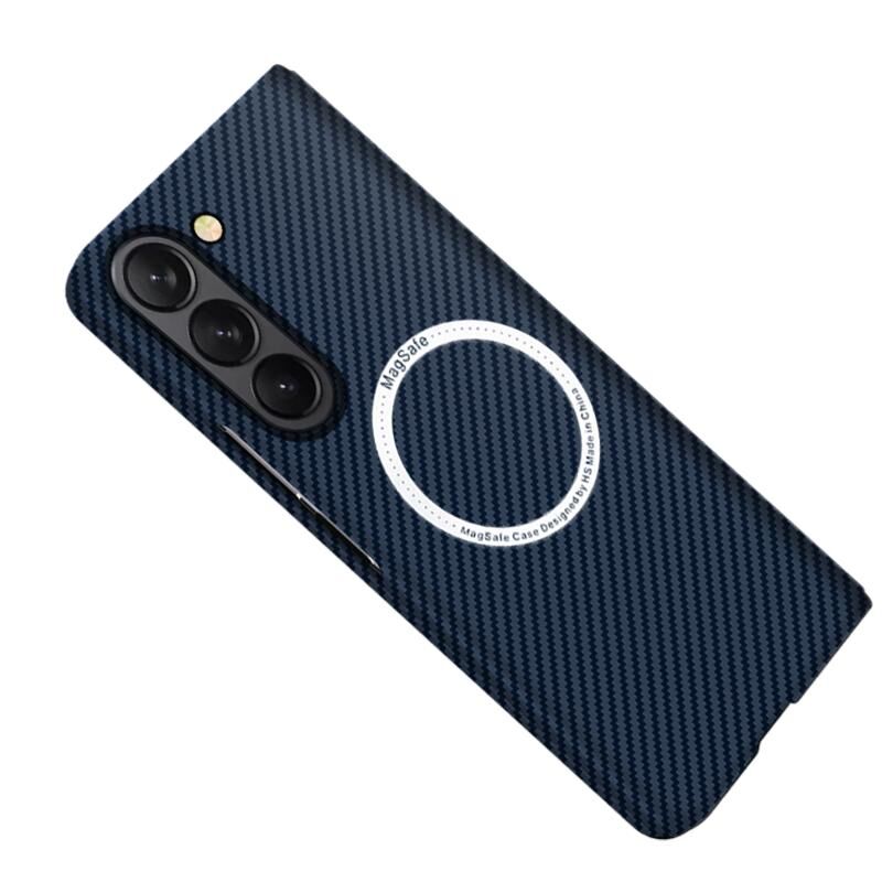 Θήκη τηλεφώνου MagSafe με μαγνητική υφή ανθρακονήματος για Samsung Galaxy Z Fold5 (Μαύρο Μπλε)