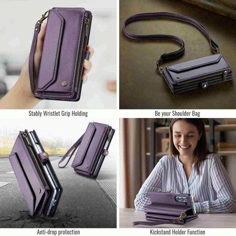 Για Samsung Galaxy Z Fold5 CaseMe C36 υποδοχές για κάρτες φερμουάρ πορτοφόλι RFID αντικλεπτική δερμάτινη θήκη τηλεφώνου (μωβ) (CaseMe)
