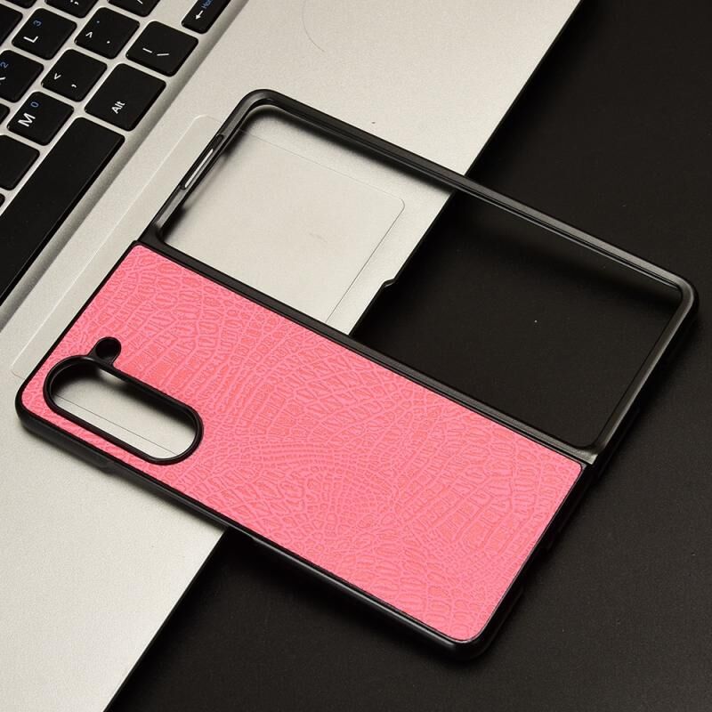 Θήκη κινητού τηλεφώνου με ανάγλυφη υφή κροκόδειλου για Samsung Galaxy Z Fold5 (Λευκό)