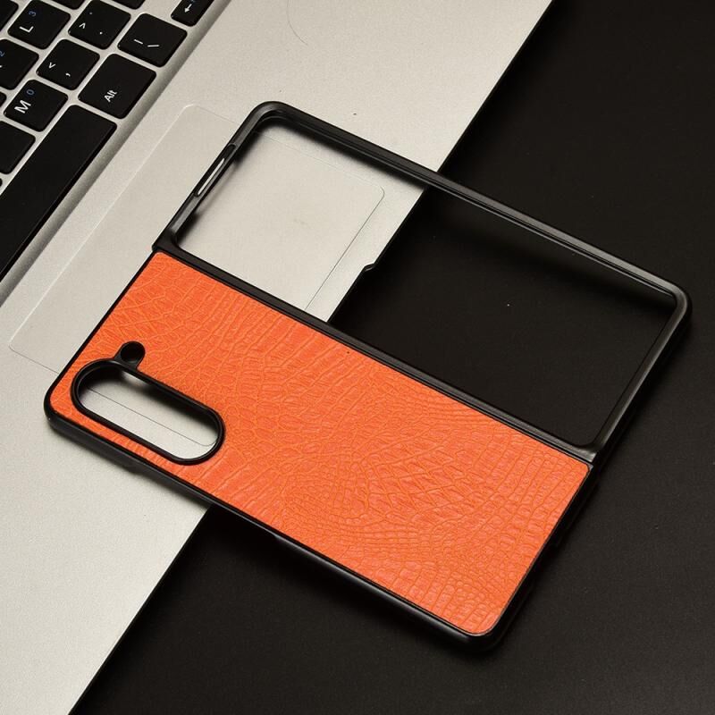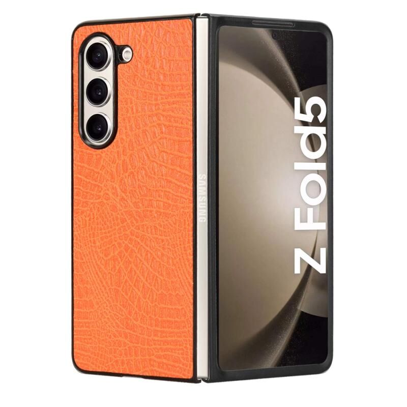 Θήκη κινητού τηλεφώνου με ανάγλυφη υφή κροκόδειλου για Samsung Galaxy Z Fold5 (Λευκό)