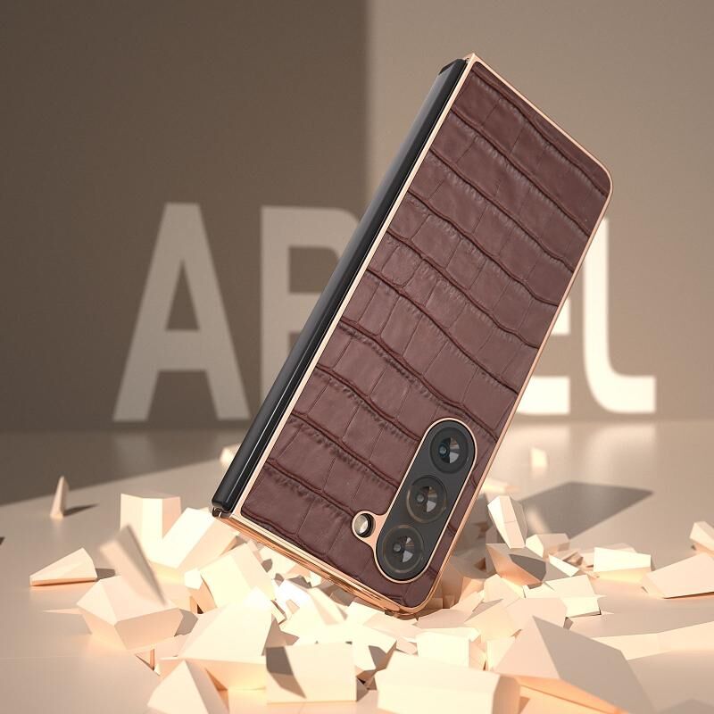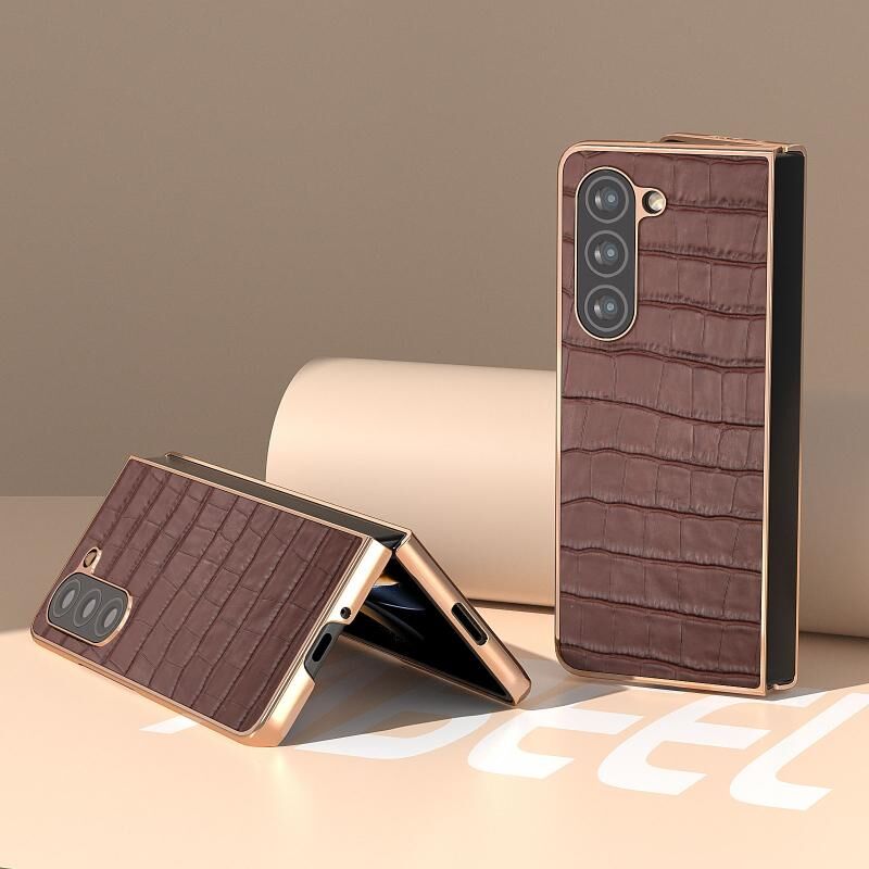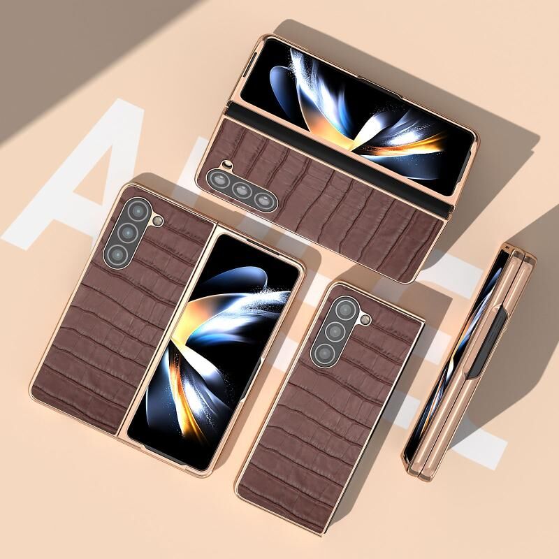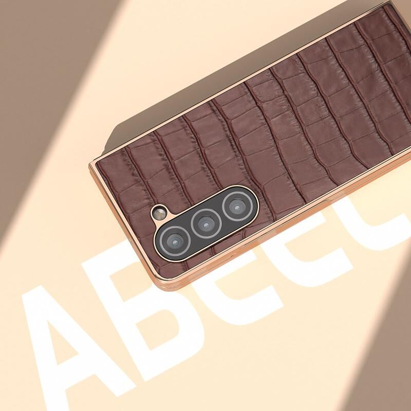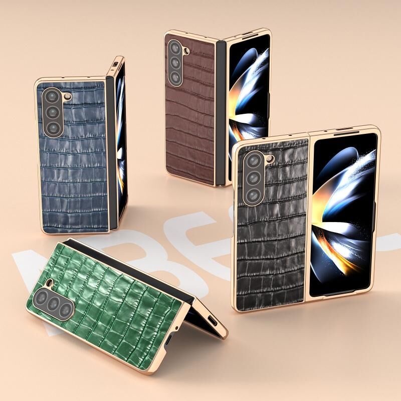 Θήκη τηλεφώνου Samsung Galaxy Z Fold5 με γνήσιο δέρμα υφής κροκόδειλου και ηλεκτρολυτική επίστρωση (Σκούρο Πράσινο)