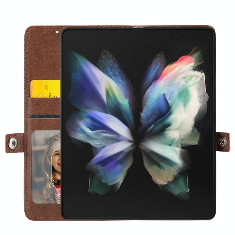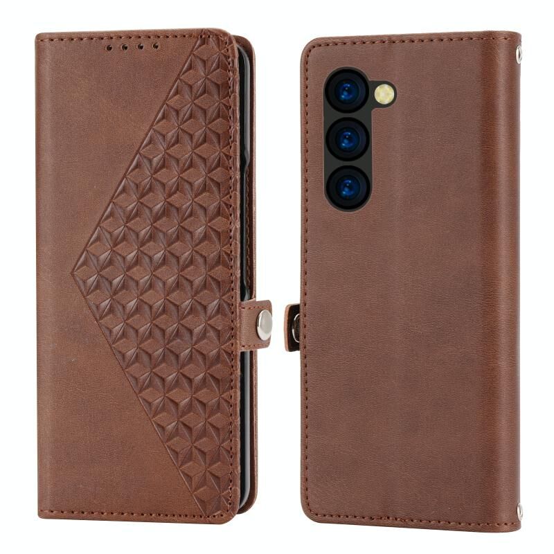 Για Samsung Galaxy Z Fold5 Cubic Grid Calf Texture μαγνητική δερμάτινη θήκη τηλεφώνου (καφέ)