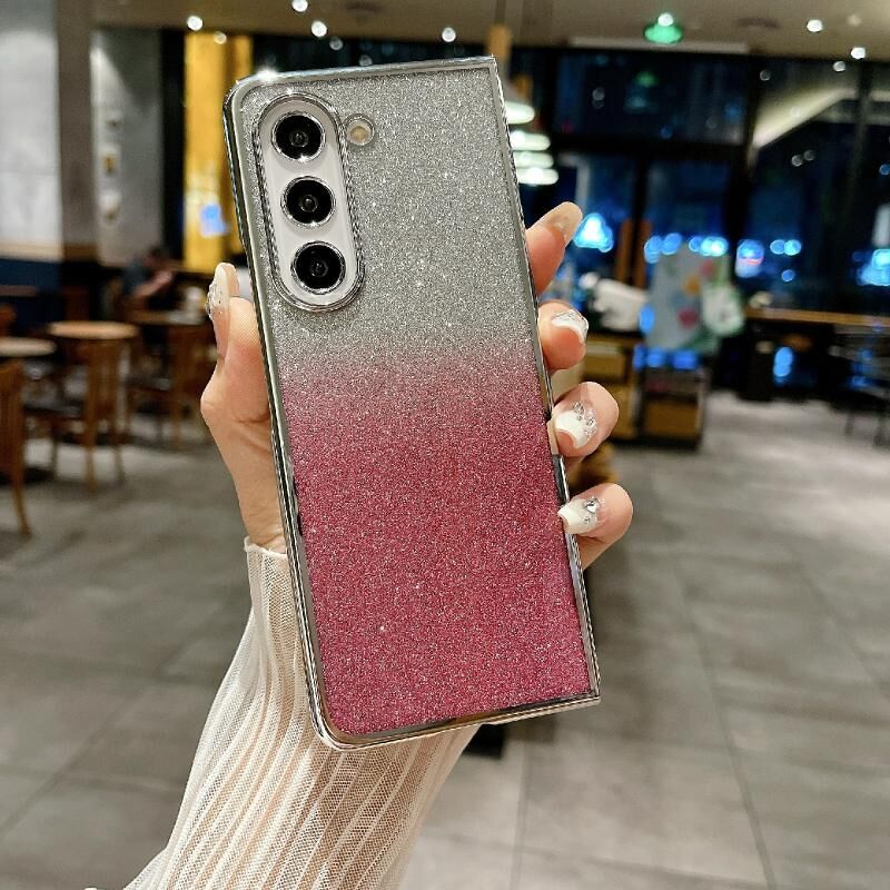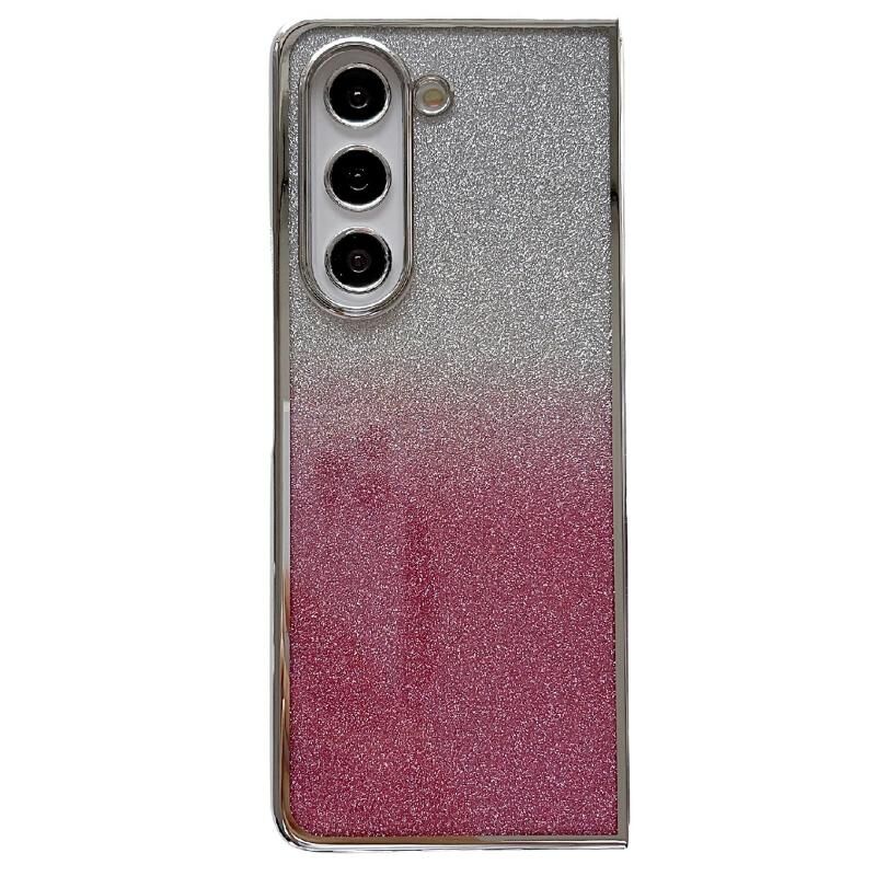 Για Samsung Galaxy Z Fold5 Electroplating Frame + Glitter Paper Full Coverage Phone Case (ροζ)