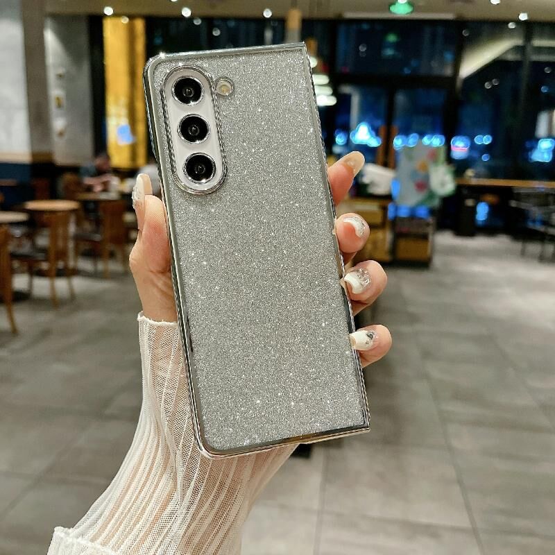 Για το Samsung Galaxy Z Fold5 Electroplating Frame + Glitter Paper Full Coverage Phone Case (Ασημί)