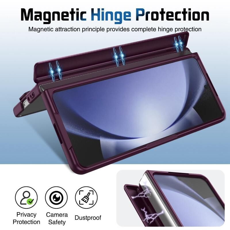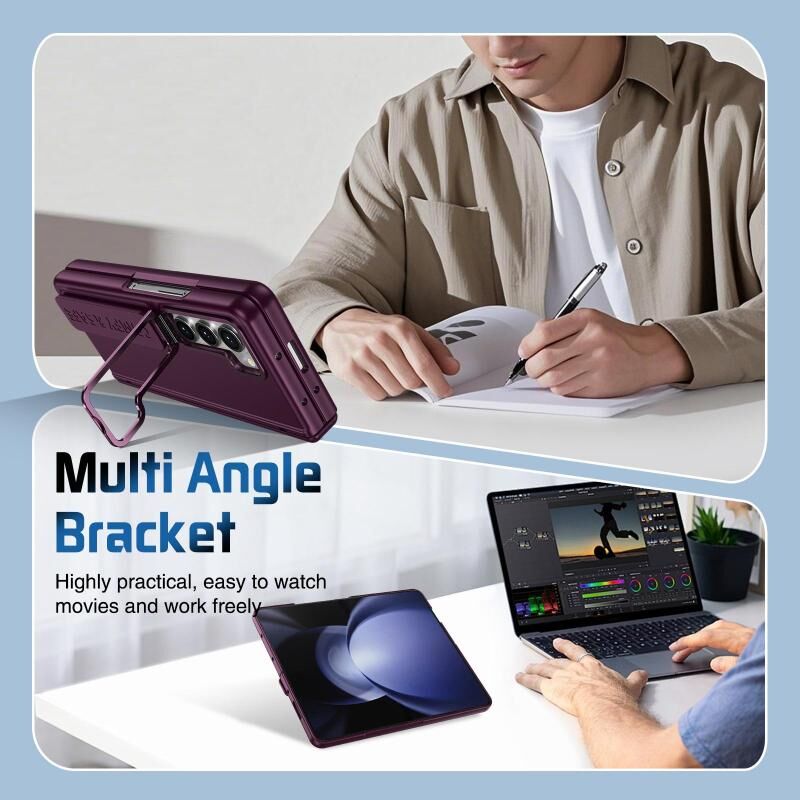 For Samsung Galaxy Z Fold5 Film Integrated Lens Frame Bracket Phone Case with Wristband(Wine Red)