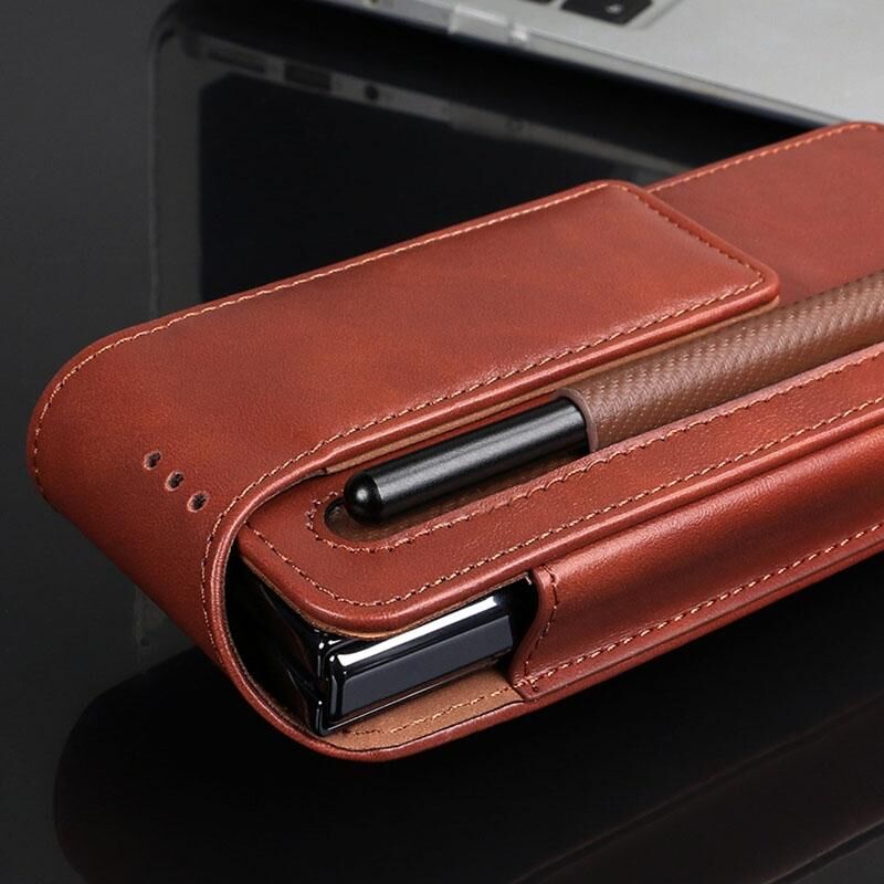 Για Samsung Galaxy Z Fold5/Fold4/Fold3 Business Back Clip δερμάτινη τσάντα τηλεφώνου, χωρίς στυλό (μπλε)