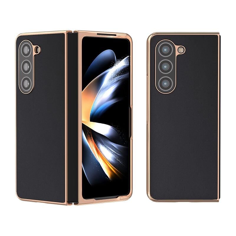 Θήκη τηλεφώνου Samsung Galaxy Z Fold5 από γνήσιο δέρμα, σειρά Silk, με νανοεπίστρωση (Μαύρο)