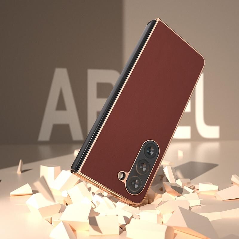 Θήκη τηλεφώνου Samsung Galaxy Z Fold5 από γνήσιο δέρμα, σειρά Silk, με νανοεπίστρωση (Καφές)