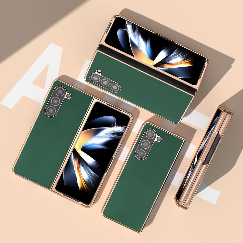 Θήκη τηλεφώνου Samsung Galaxy Z Fold5 από γνήσιο δέρμα, σειρά Silk, με νανοεπίστρωση (Μαύρο)