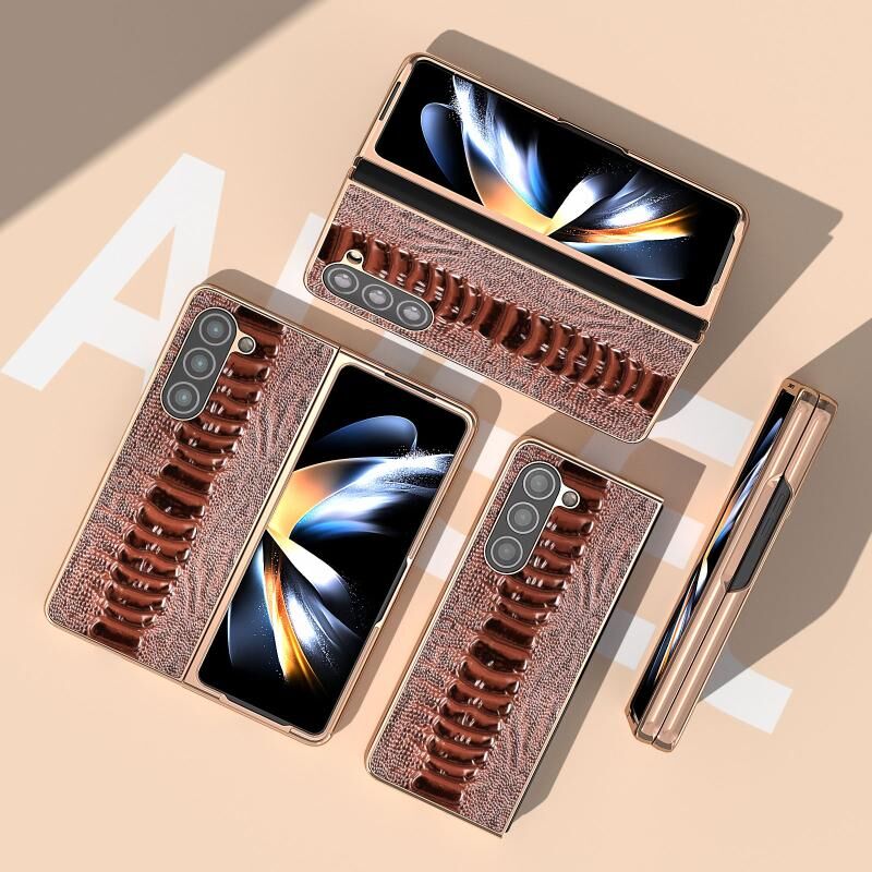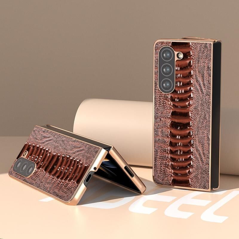 Θήκη τηλεφώνου Samsung Galaxy Z Fold5 από γνήσιο δέρμα σειρά Weilai με νανοεπίχρυση (Καφές)