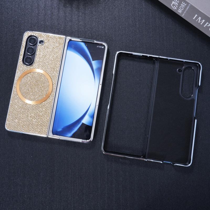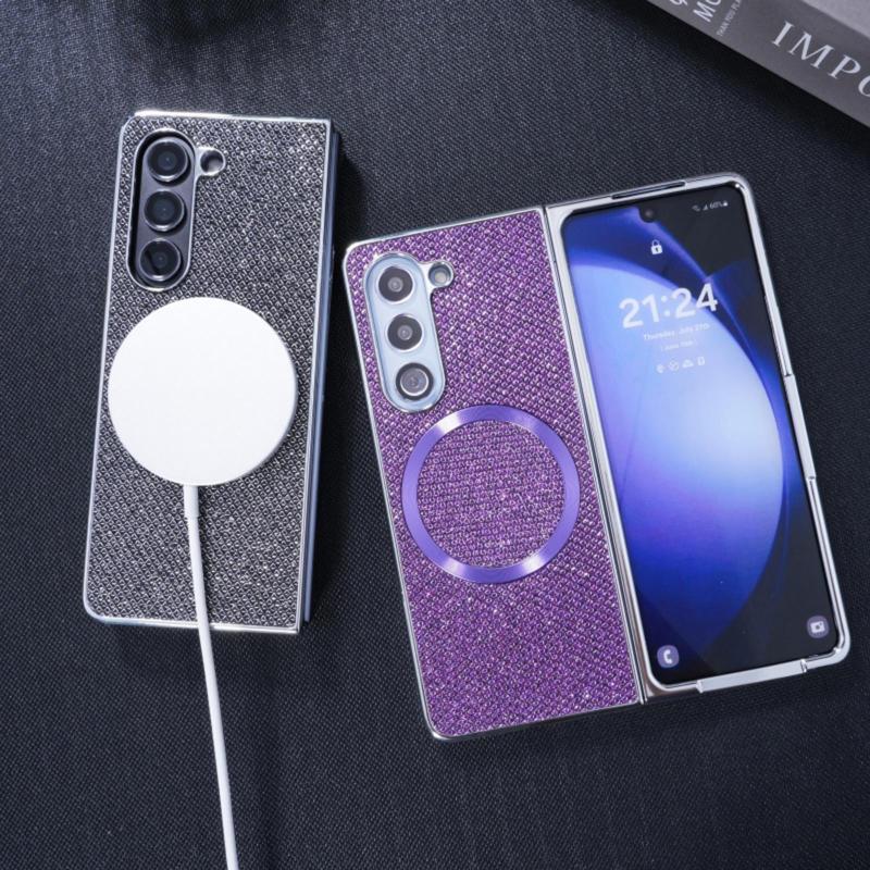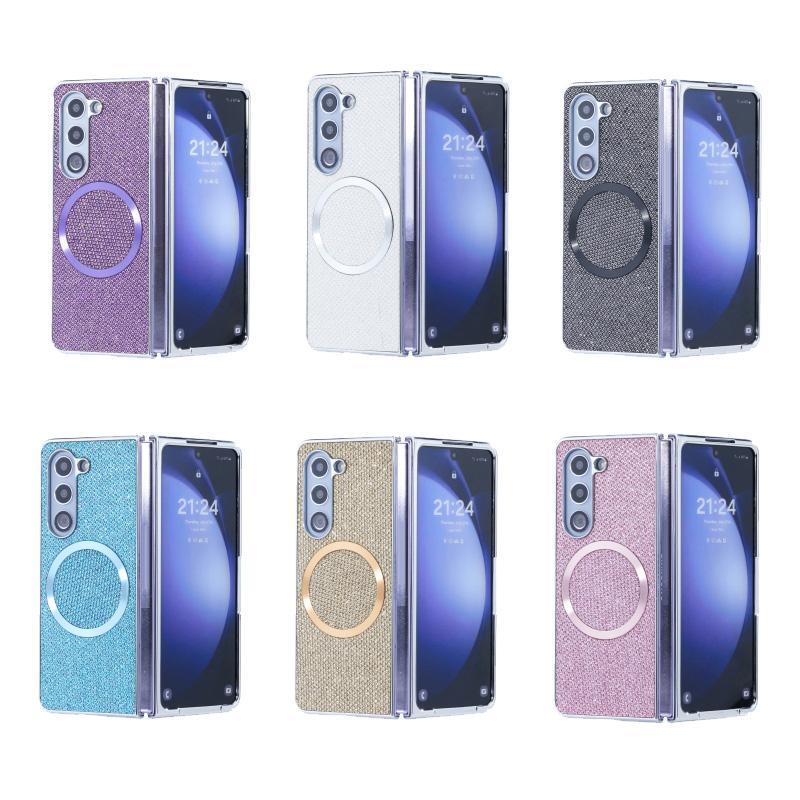 For Samsung Galaxy Z Fold5 Glitter Powder MagSafe Magnetic Fold Phone Case(Pink)
