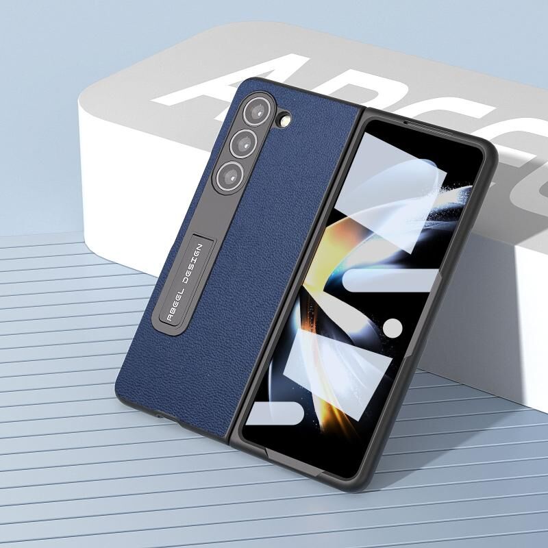 Θήκη τηλεφώνου Samsung Galaxy Z Fold5 με ενσωματωμένο γνήσιο δέρμα σειράς Luolai με βάση στήριξης (Κόκκινο)