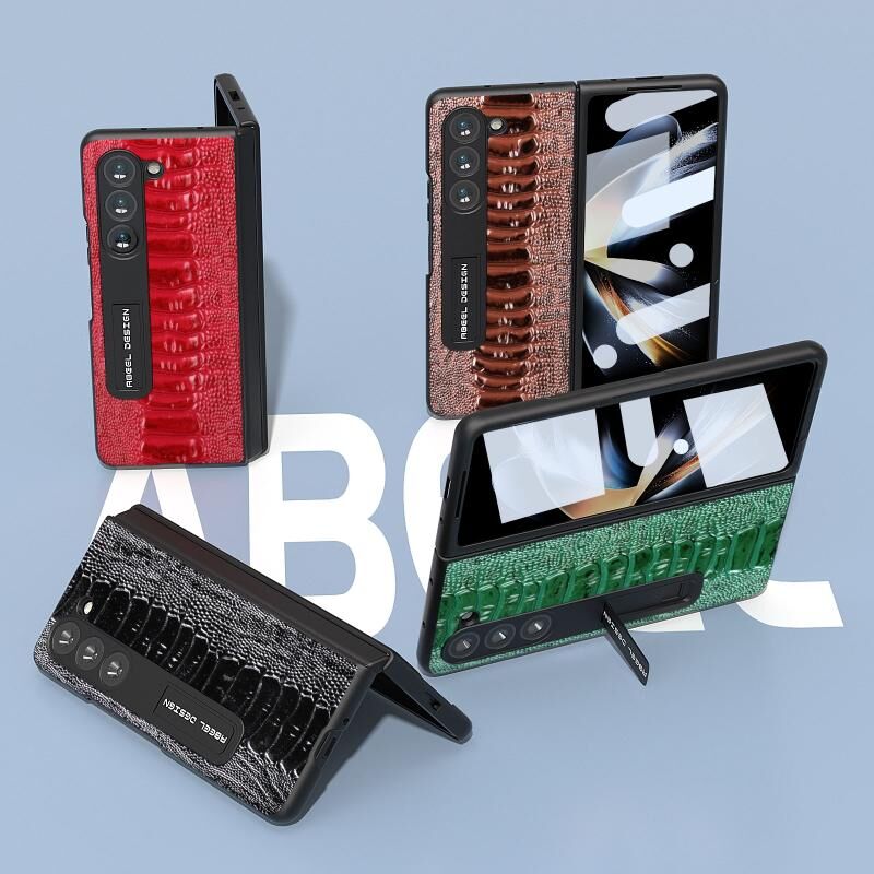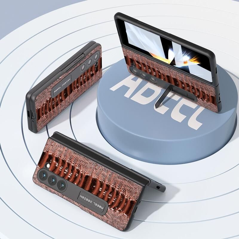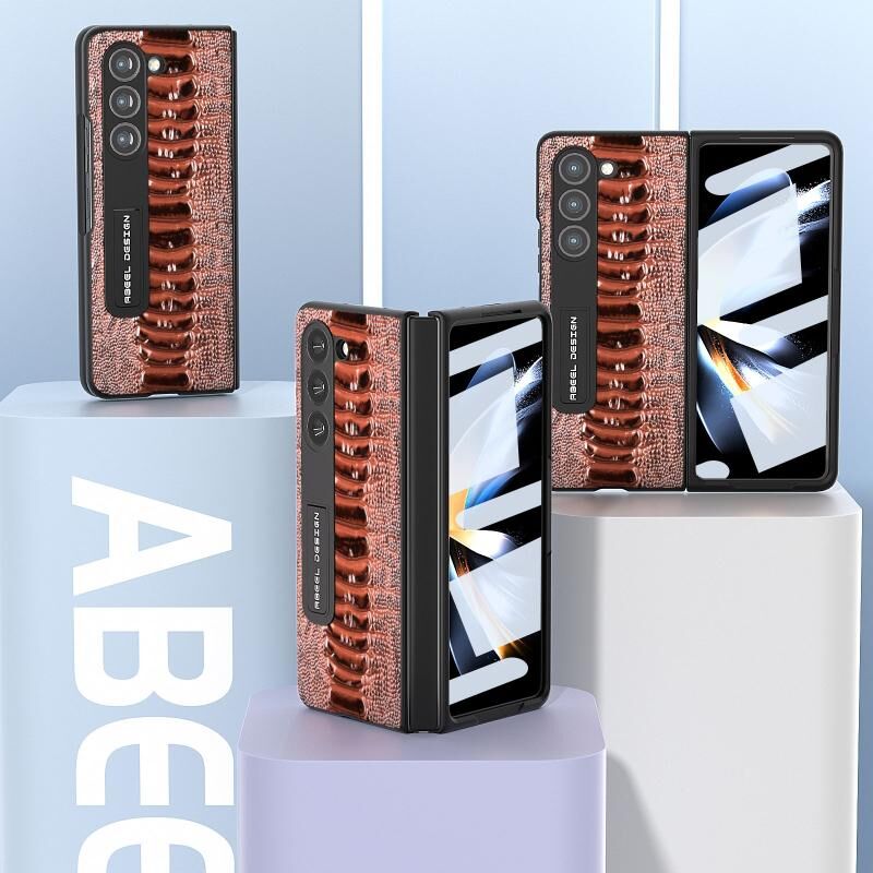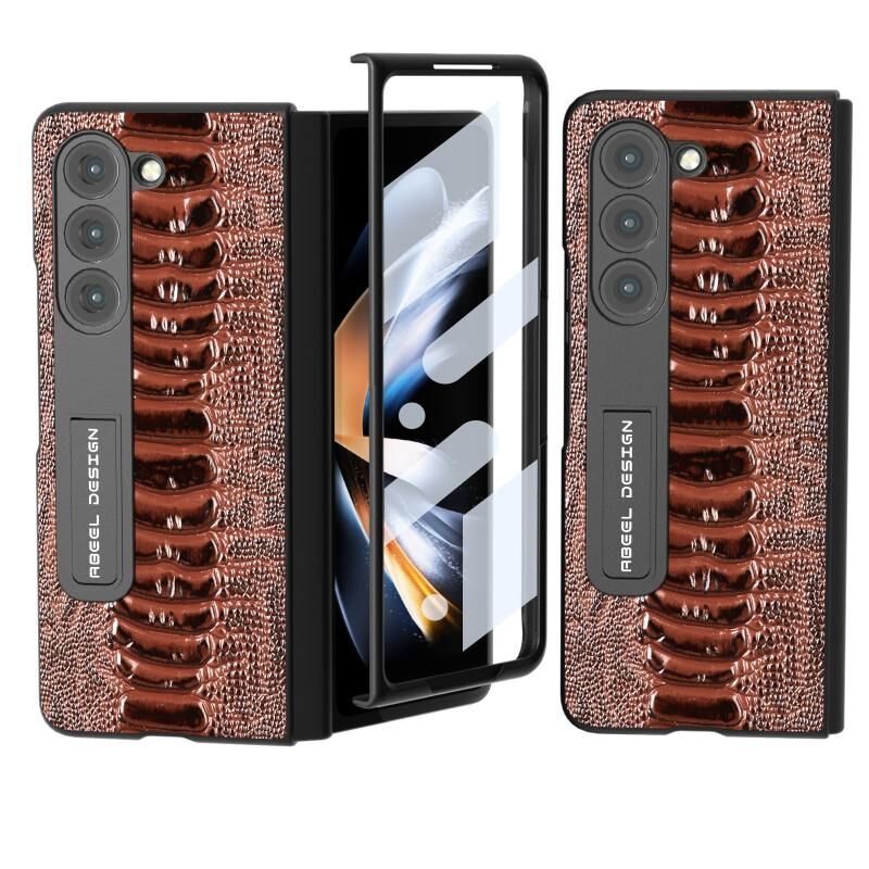 Θήκη τηλεφώνου Weilai Series από γνήσιο δέρμα για Samsung Galaxy Z Fold5 με βάση στήριξης (Καφέ)
