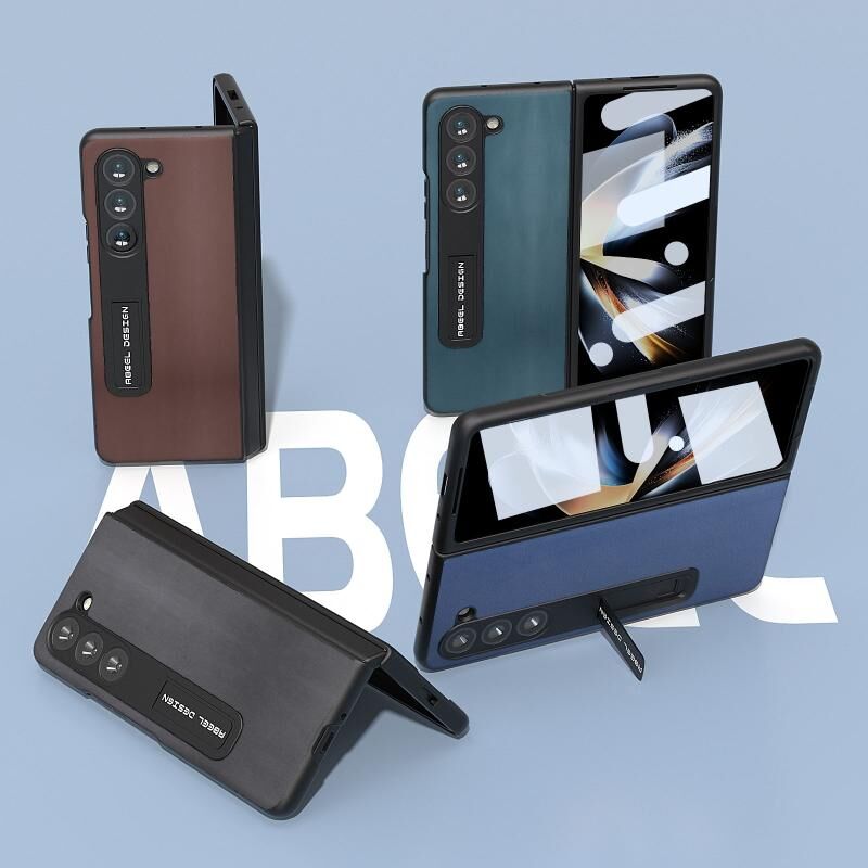Θήκη τηλεφώνου Samsung Galaxy Z Fold5 με ενσωματωμένο γνήσιο δέρμα Xiaoya Series με βάση στήριξης (Μαύρο)