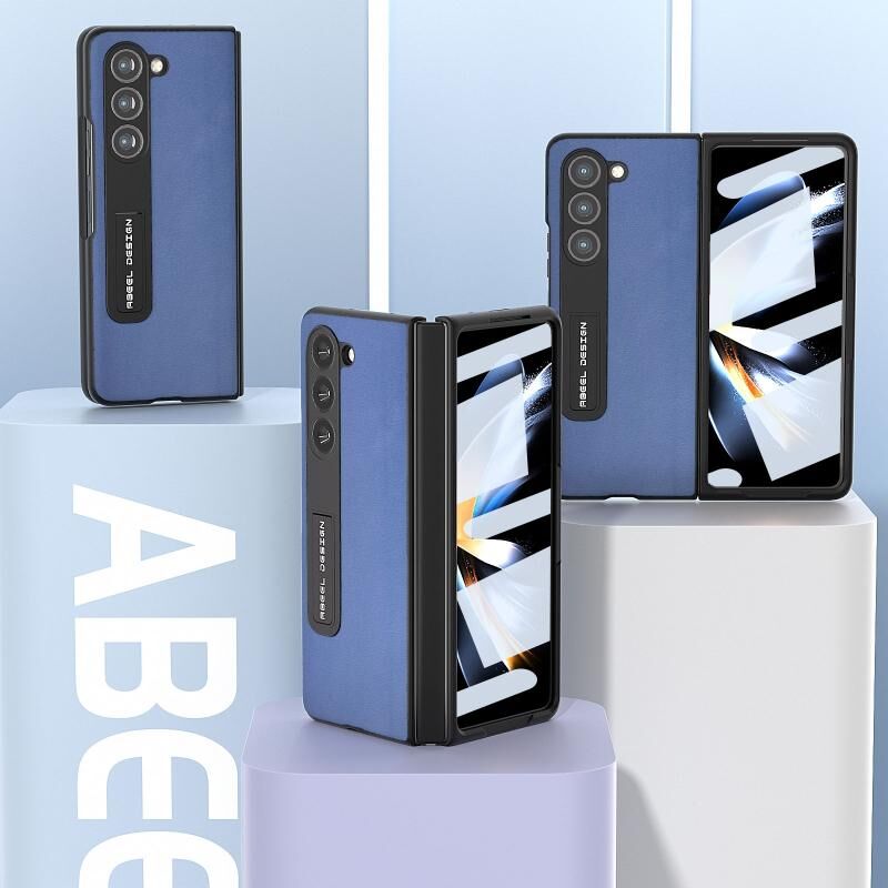 Θήκη τηλεφώνου Samsung Galaxy Z Fold5 με ενσωματωμένο γνήσιο δέρμα Xiaoya Series με βάση στήριξης (Μαύρο)