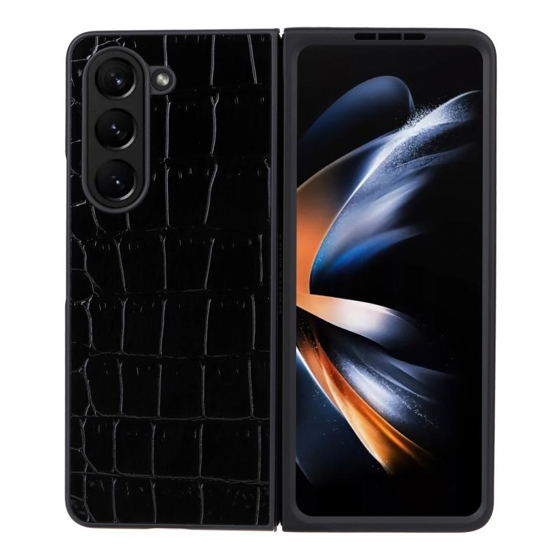 For Samsung Galaxy Z Fold5 Integrated Glass Film + Leather Flip Phone Case(Crocodile Texture)