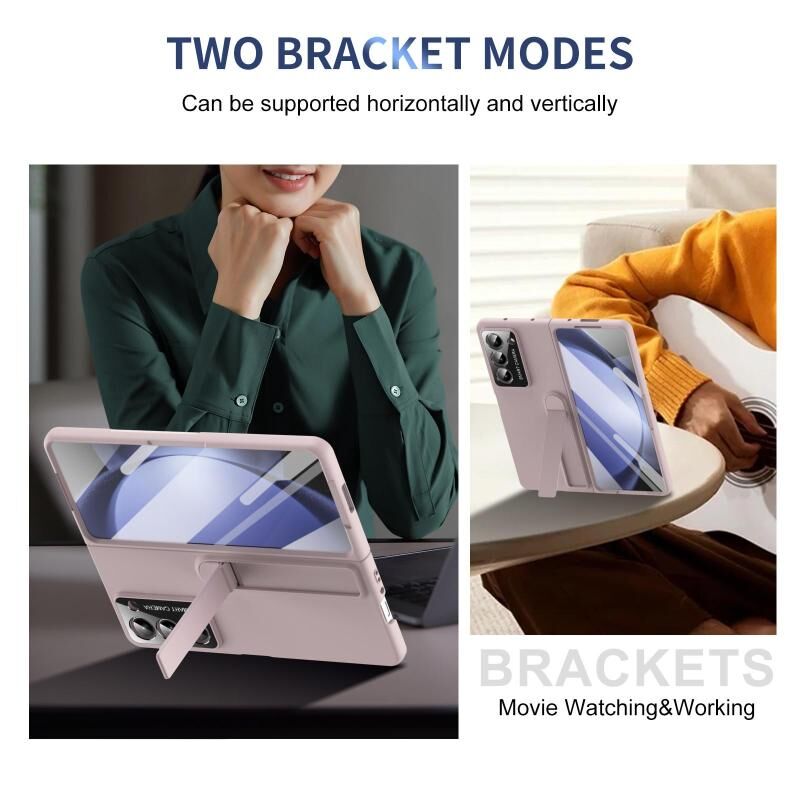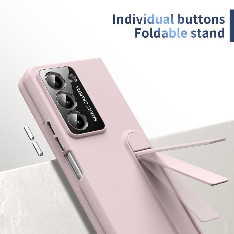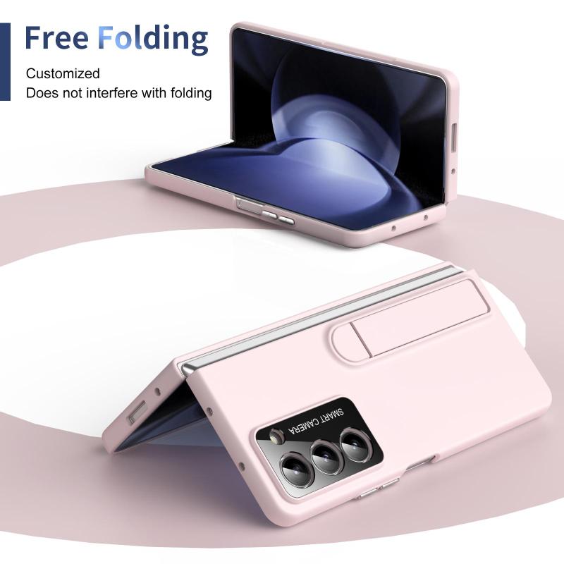For Samsung Galaxy Z Fold5 Integrated Skin Feel Fold Holder Phone Case(Pink)