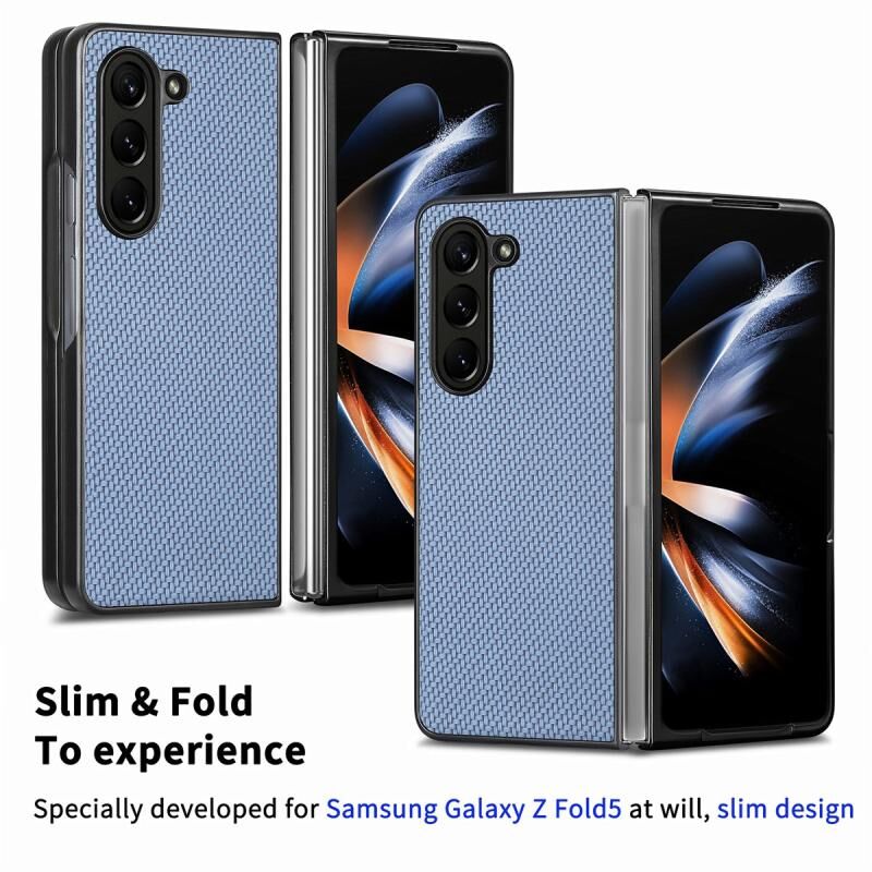 Θήκη τηλεφώνου αναδιπλούμενου τύπου PC με δερμάτινη όψη ανθρακονήματος για Samsung Galaxy Z Fold5 JUNSUNMAY (Μπλε) (JUNSUNMAY)