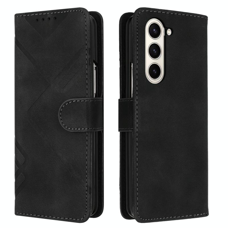 Θήκη τηλεφώνου Samsung Galaxy Z Fold5 με δερμάτινη υφή και μοτίβο γραμμών (Μαύρο)