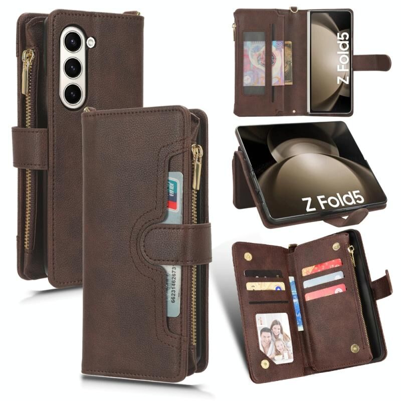 Για Samsung Galaxy Z Fold5 Litchi υφή φερμουάρ δερμάτινη θήκη τηλεφώνου (καφέ)