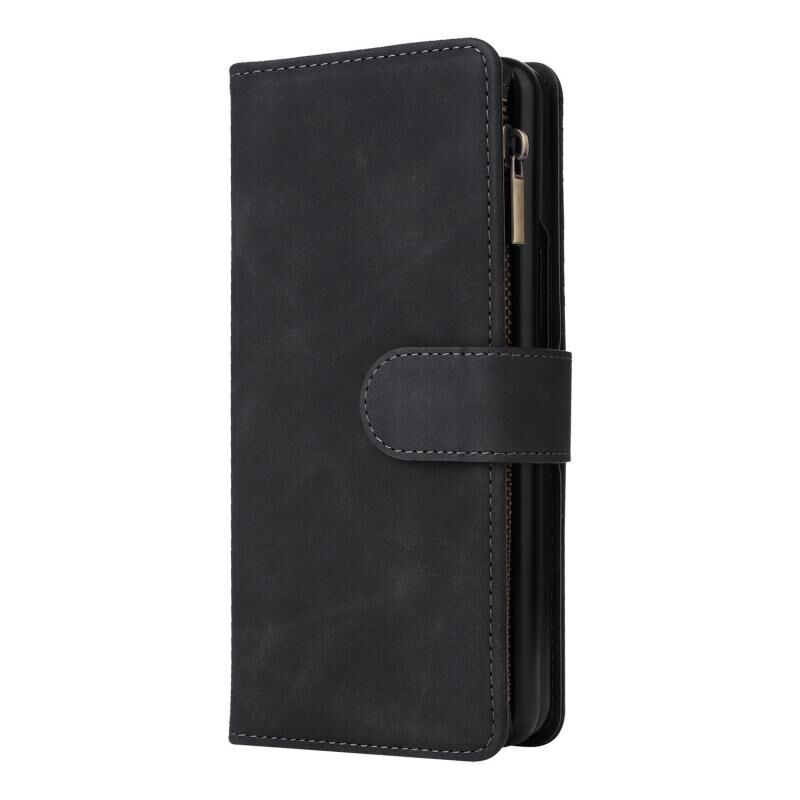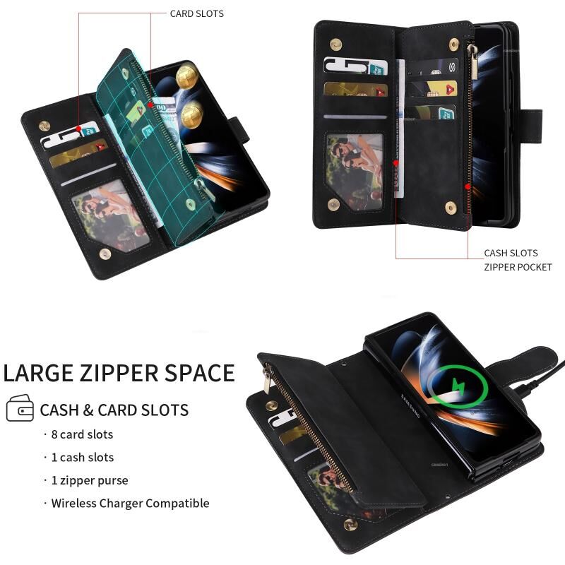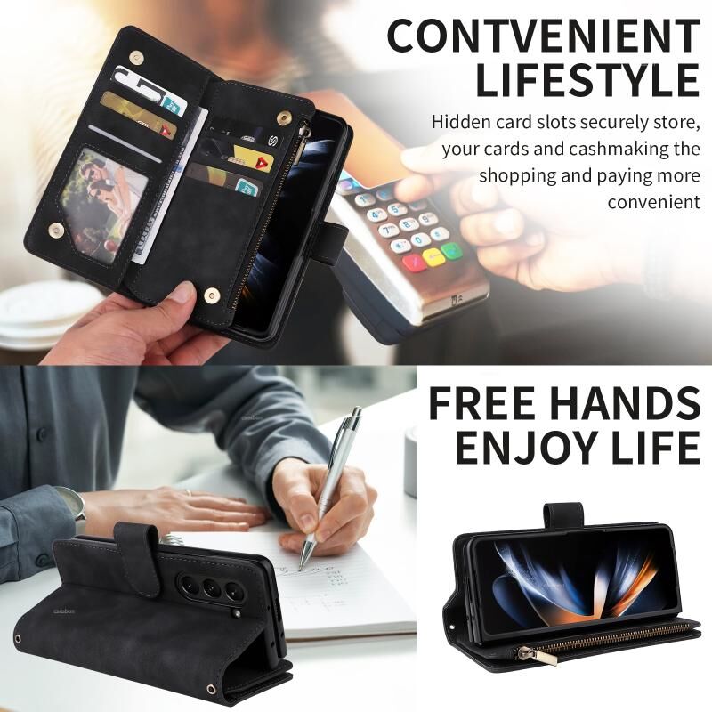 Για Samsung Galaxy Z Fold5 πολυλειτουργικό παγωμένο φερμουάρ πορτοφόλι δερμάτινη θήκη τηλεφώνου (μαύρο)